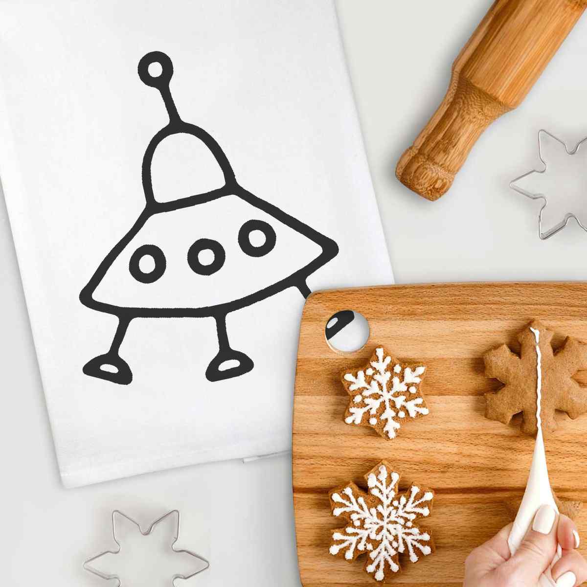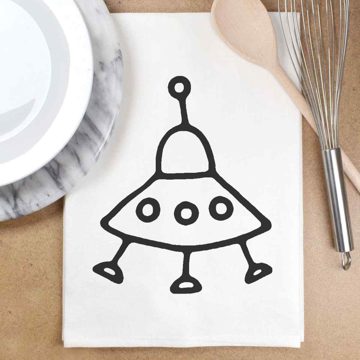 'Alien Spaceship' Cotton Tea Towel / Dish Cloth (TW017869)