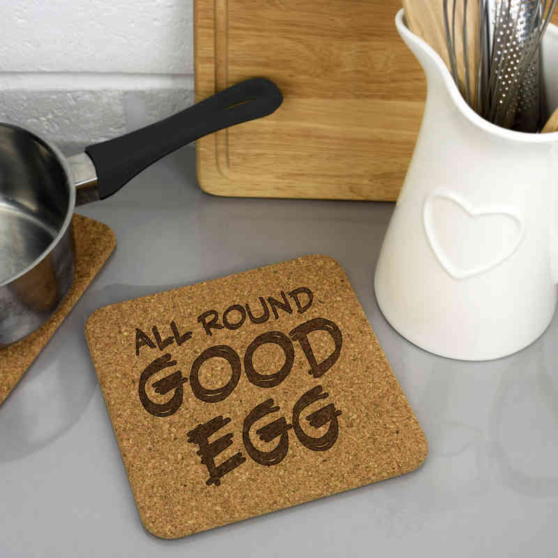 'All Round Good Egg' Square Cork Trivet / Pot Stand (TR00028620)