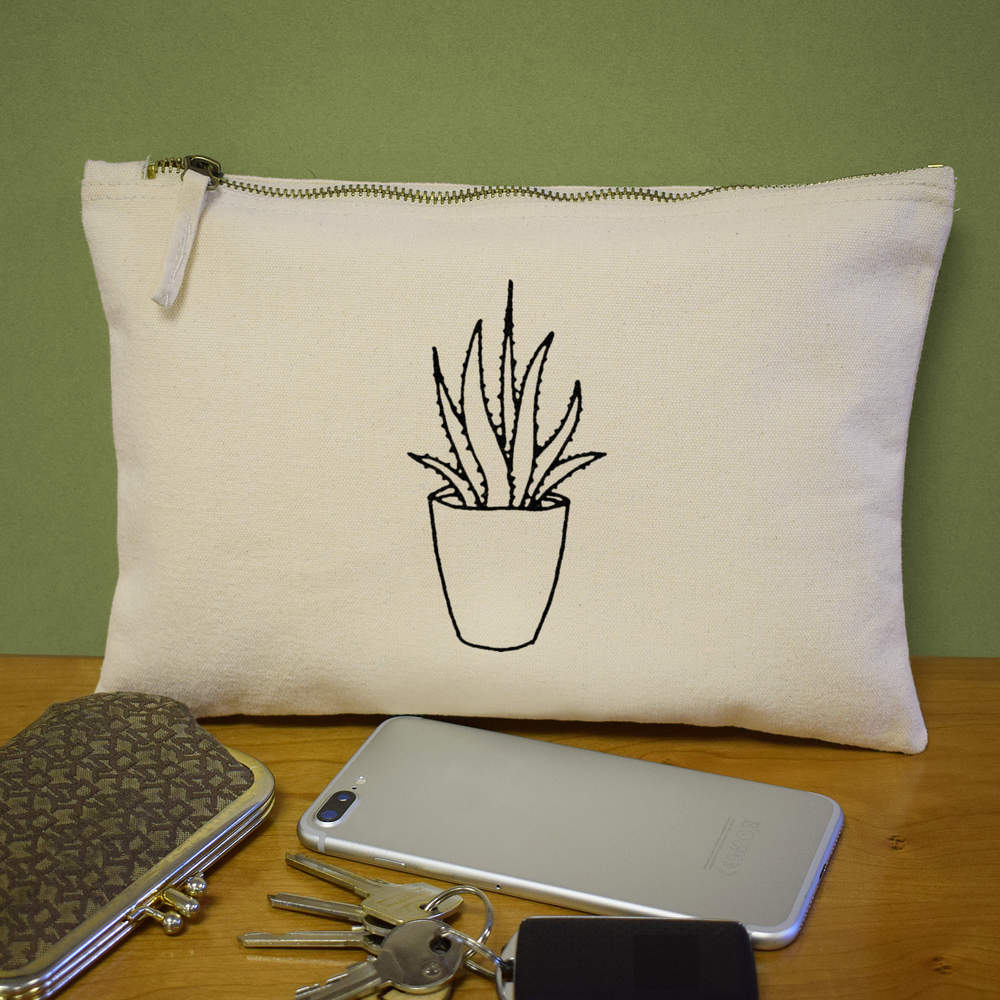 'Aloe Vera Plant' Canvas Clutch Bag / Accessory Case (CL00012610)