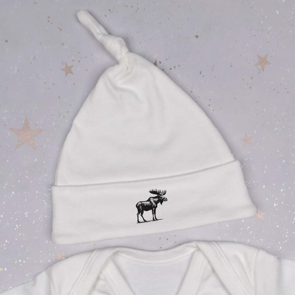 Keep little ones cosy and stylish with this super soft beanie hat. Our baby beanie hats have a knotted top and are printed on the turnover with a unique design. Made from 100% cotton, it can be machine washed and still retain its shape. This beanie hat has a stretch fit so one size fits all, with an approximate circumference of 32cm, it's ideal for babies up to 12 months old.