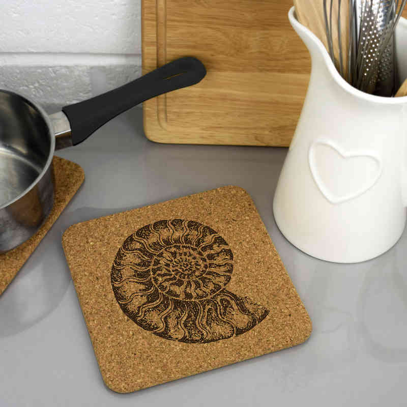 'Ammonite' Square Cork Trivet / Pot Stand (TR00023528)