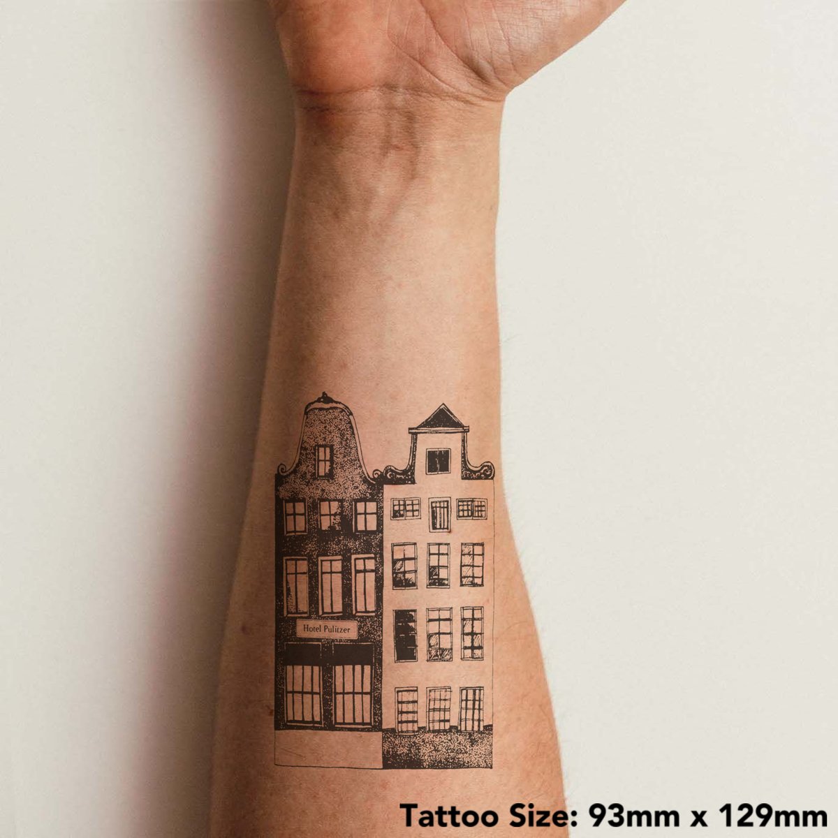 'Amsterdam Buildings' Temporary Tattoo - Water Resistant, Skin-Safe, Non-Toxic Transfer (TO00018871)