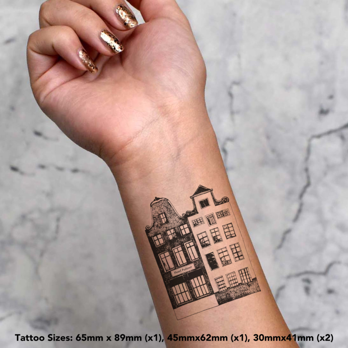 'Amsterdam Buildings' Temporary Tattoos - Water Resistant, Skin-Safe, Non-Toxic Transfers (TO005560)