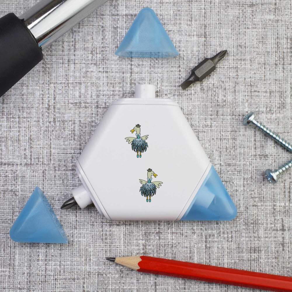 Our triangular compact multi tool is printed on one side with a unique design, making it a great gift for DIY lovers. This 3-in-1 tool set contains a tape measure and 2 different screwdriver attachments and each corner has a snap shut lid. One corner reveals a 1 meter tape measure, while the others hide two reversible screwdriver attachments, one larger and one smaller, both of which have a cross head on one end and a flat head on the other.