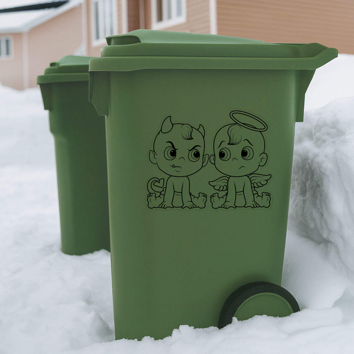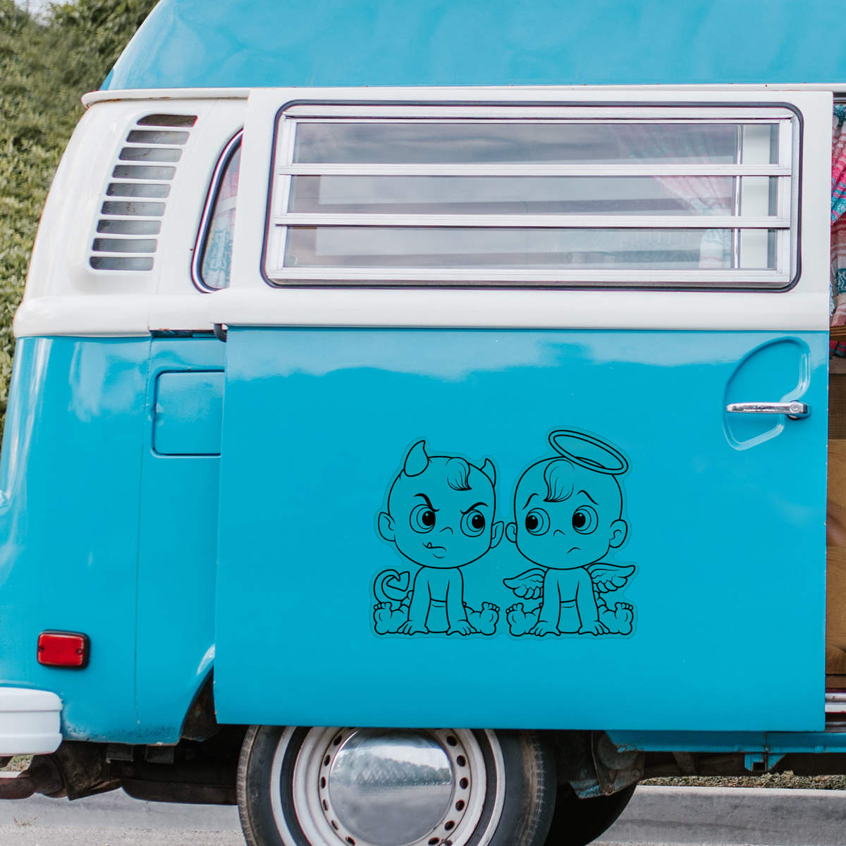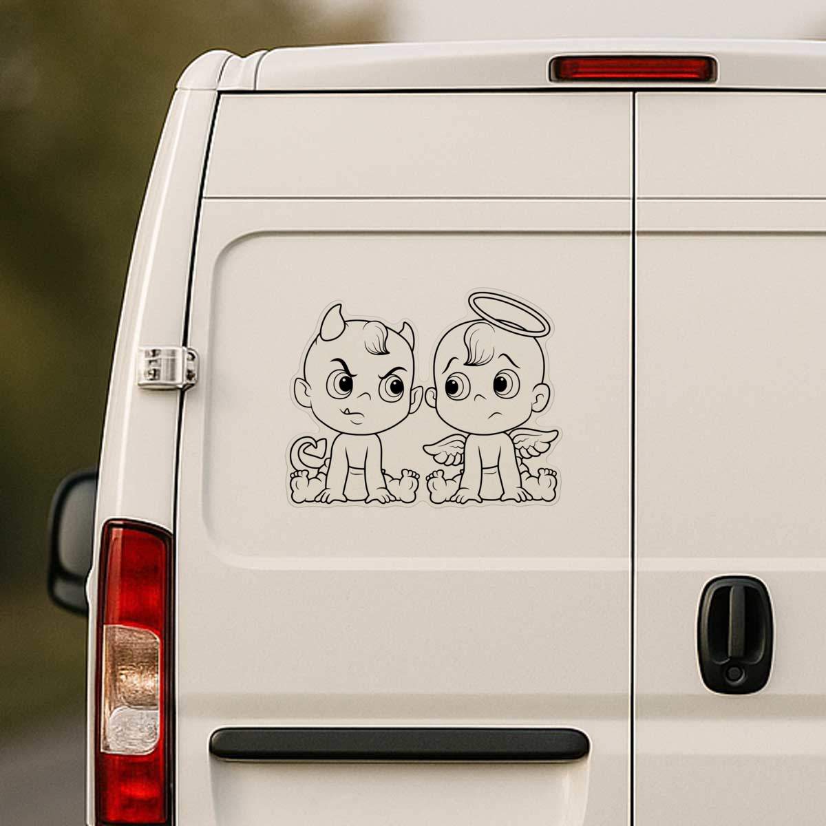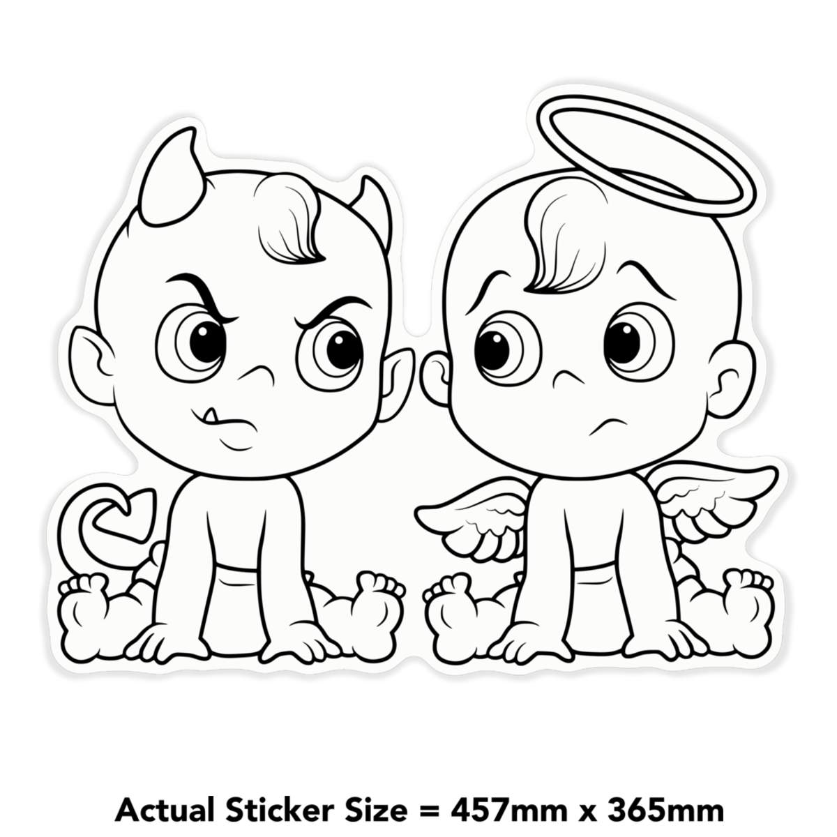 'Angel & Devil Babies' Clear Premium Vinyl Decal Stickers – Waterproof, Durable & Easy to Apply - For Car Bumpers, Windows, Bins & More - XL (460mm) (DC00081748)