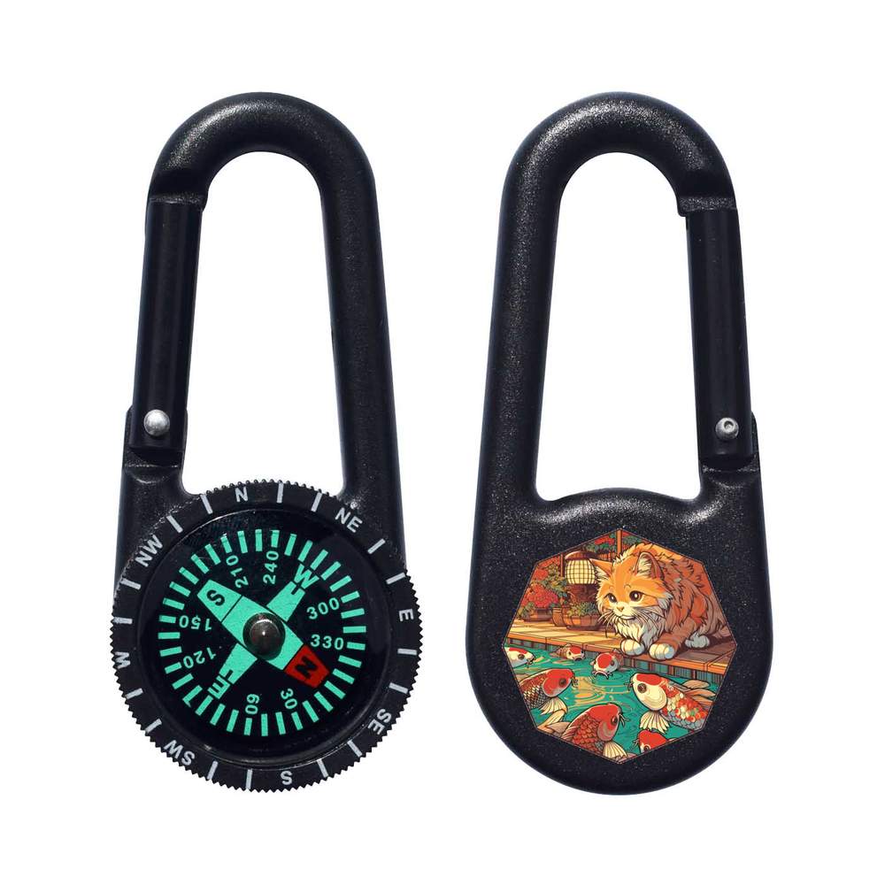 'Anime Cat With Fish Pond' Compass Keyring (KC00035046)