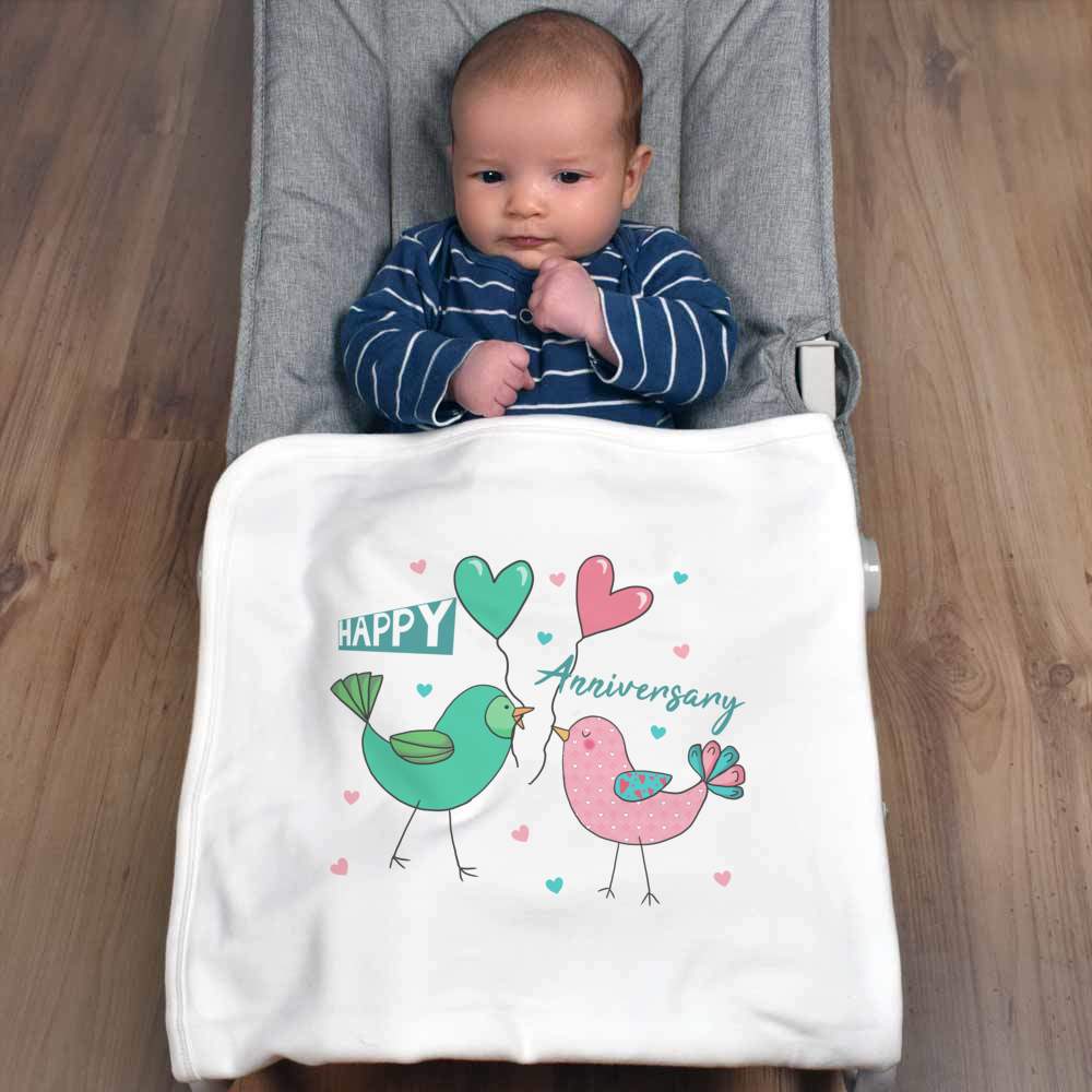 'Anniversary Lovebirds' Cotton Baby Blanket / Shawl (BY00038323)