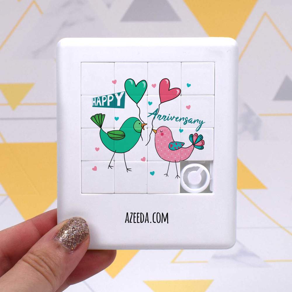 - Pocket sized puzzle with sliding square pieces