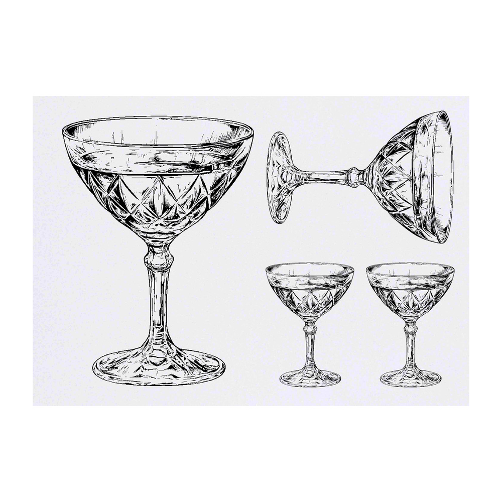 'Antique Crystal Cocktail Glass' Temporary Tattoos - Water Resistant, Skin-Safe, Non-Toxic Transfers (TO051578)