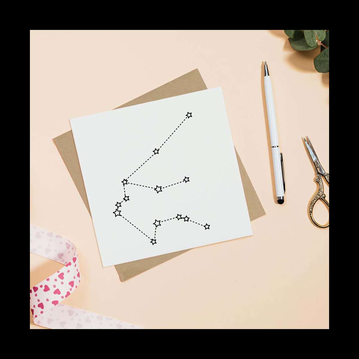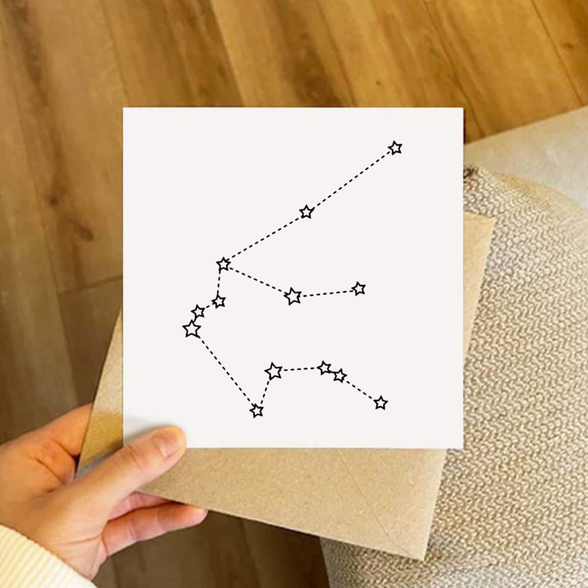 - Square greeting card supplied with a recycled brown envelope