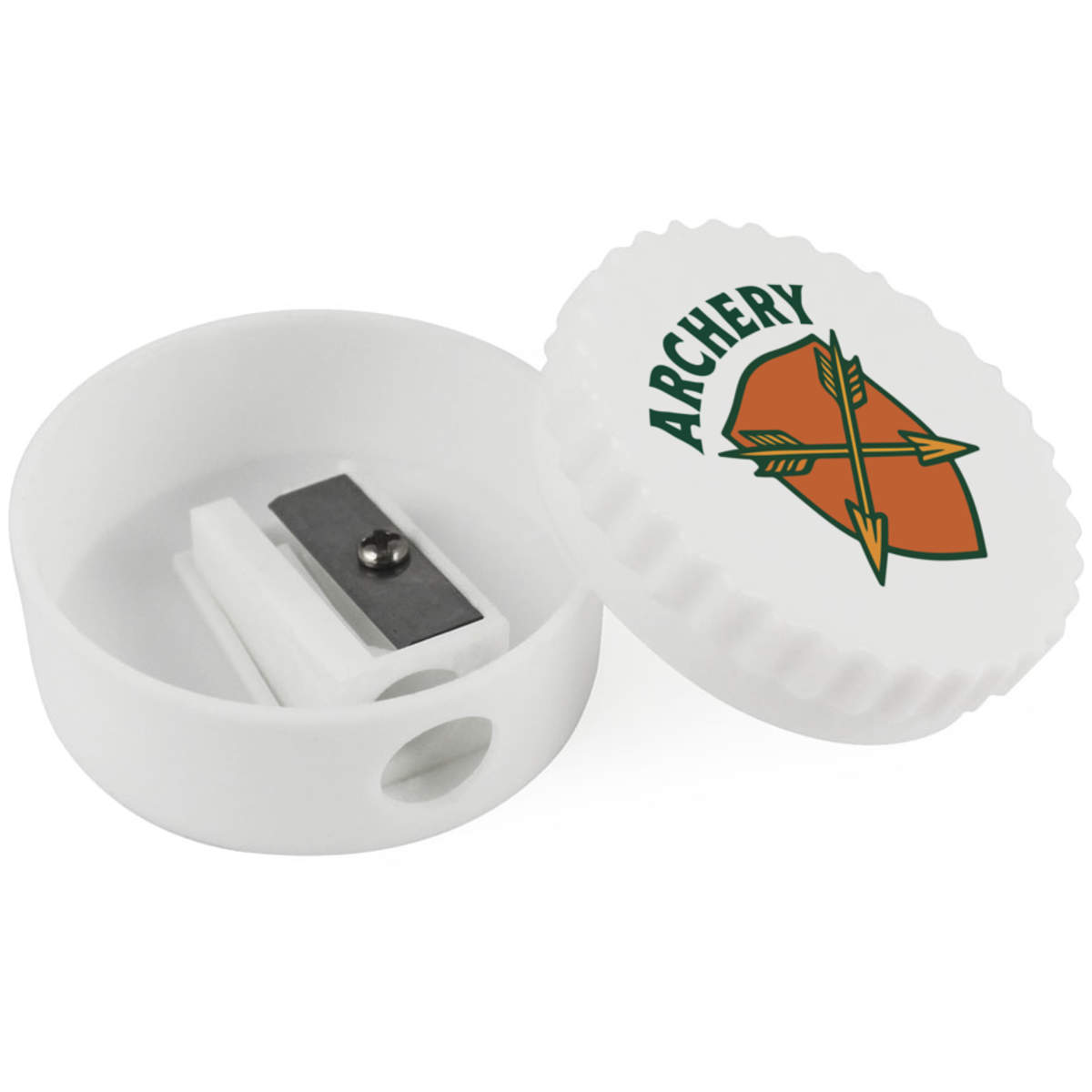 Keep your pencils sharp and ready to use with this sturdy, single hole sharpener featuring one of our awesome designs. The twisting lid conceals the hole to the blade and removes completely to allow shavings to be discarded.