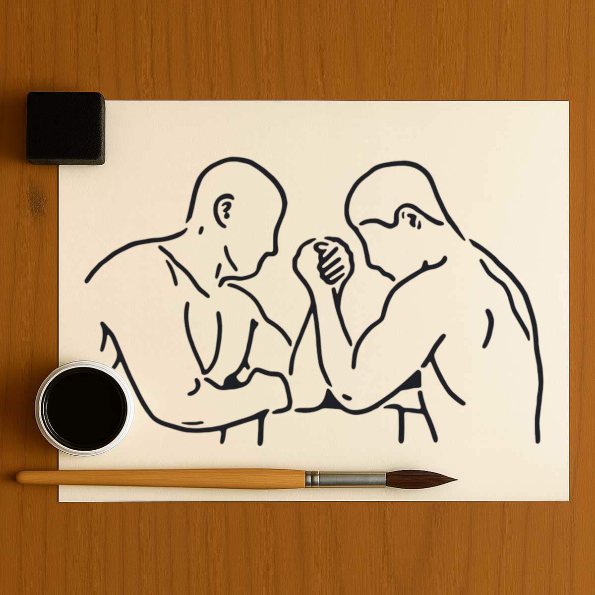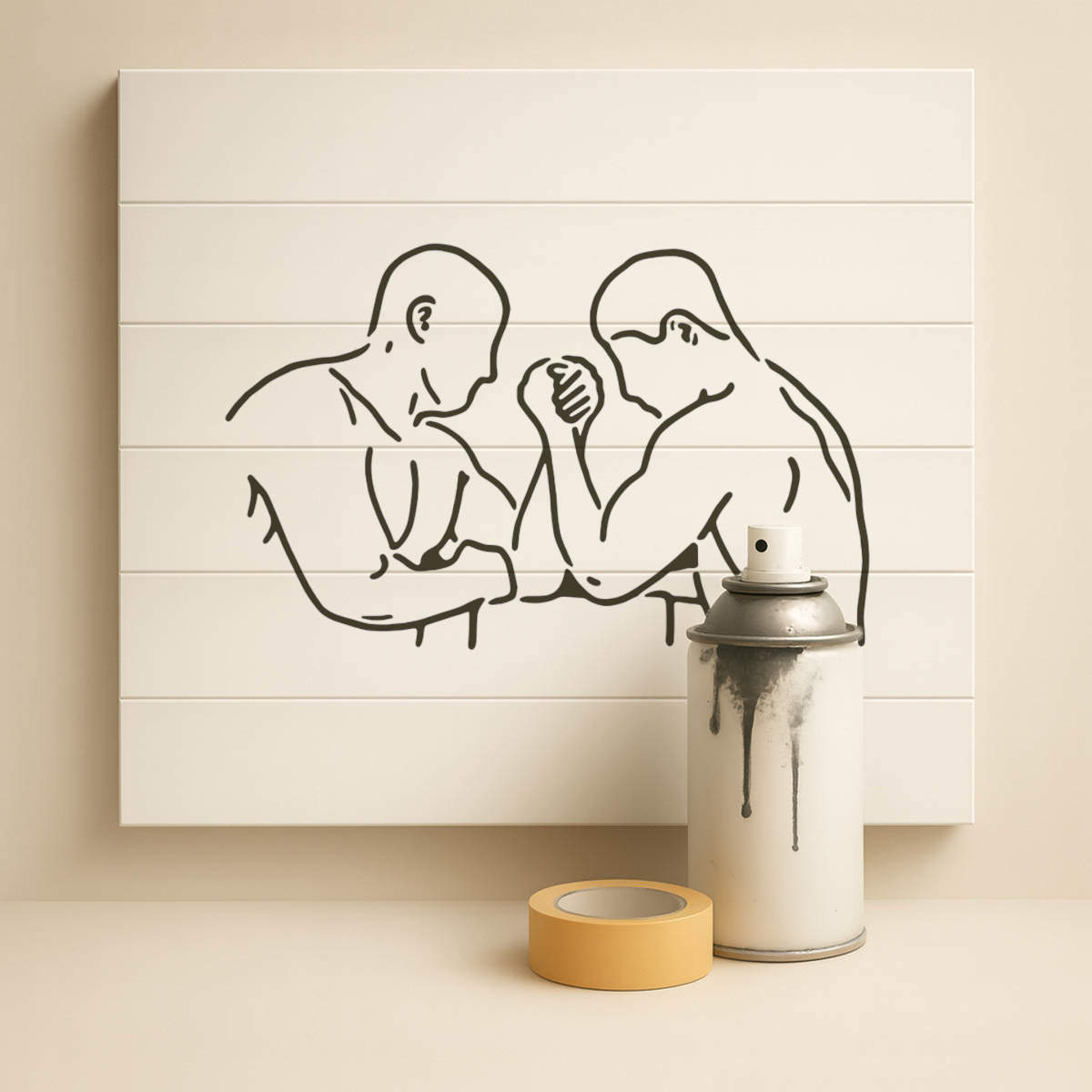 'Arm Wrestling' Reusable Stencil – Durable Decorative Template for Painting and Spraying on Walls, Tiles, Wood, Fabric & Craft Projects - M (A5) (WS00031688)