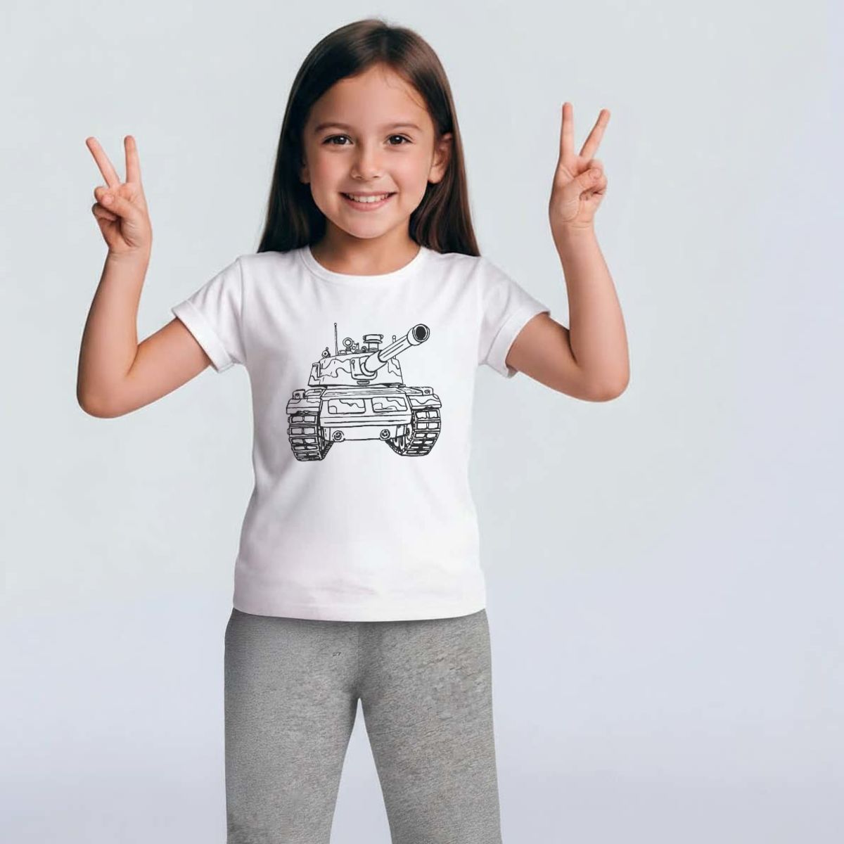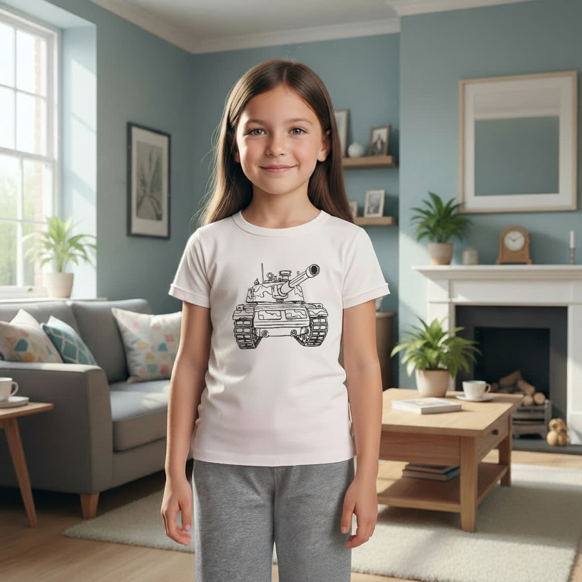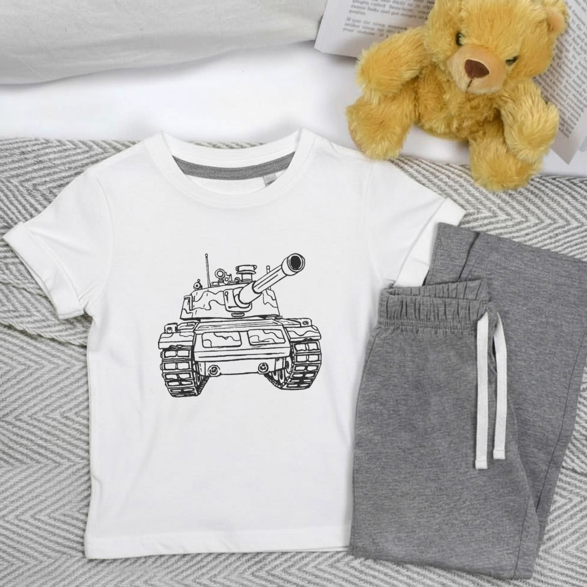 'Army Tank' Kids Cotton Pyjama Set – Comfortable Children's Nightwear, Sleepwear and Loungewear - Unisex for Boys and Girls - Grey, 5-6 Years (KP00138553)