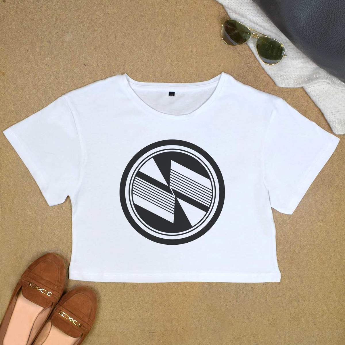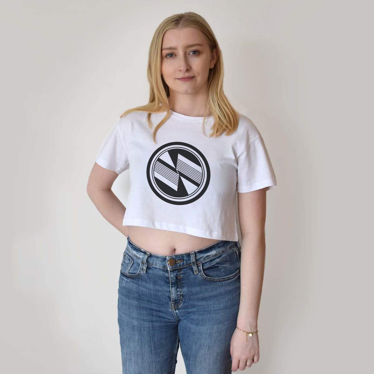 'Women's, Crop Top, White, Crew neck, Cropped'