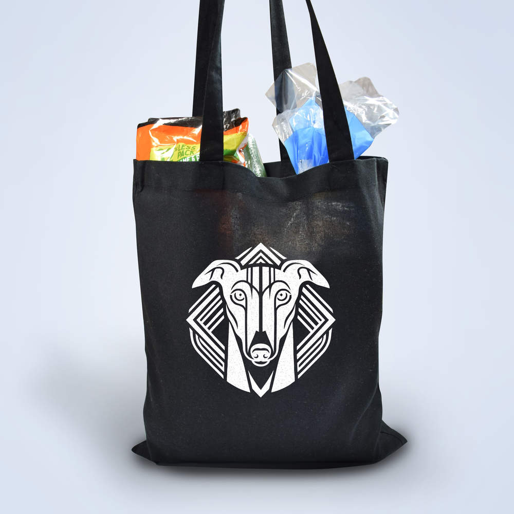 'Art Deco Greyhound' Classic Black Tote Shopper Bag (ZB00023453)