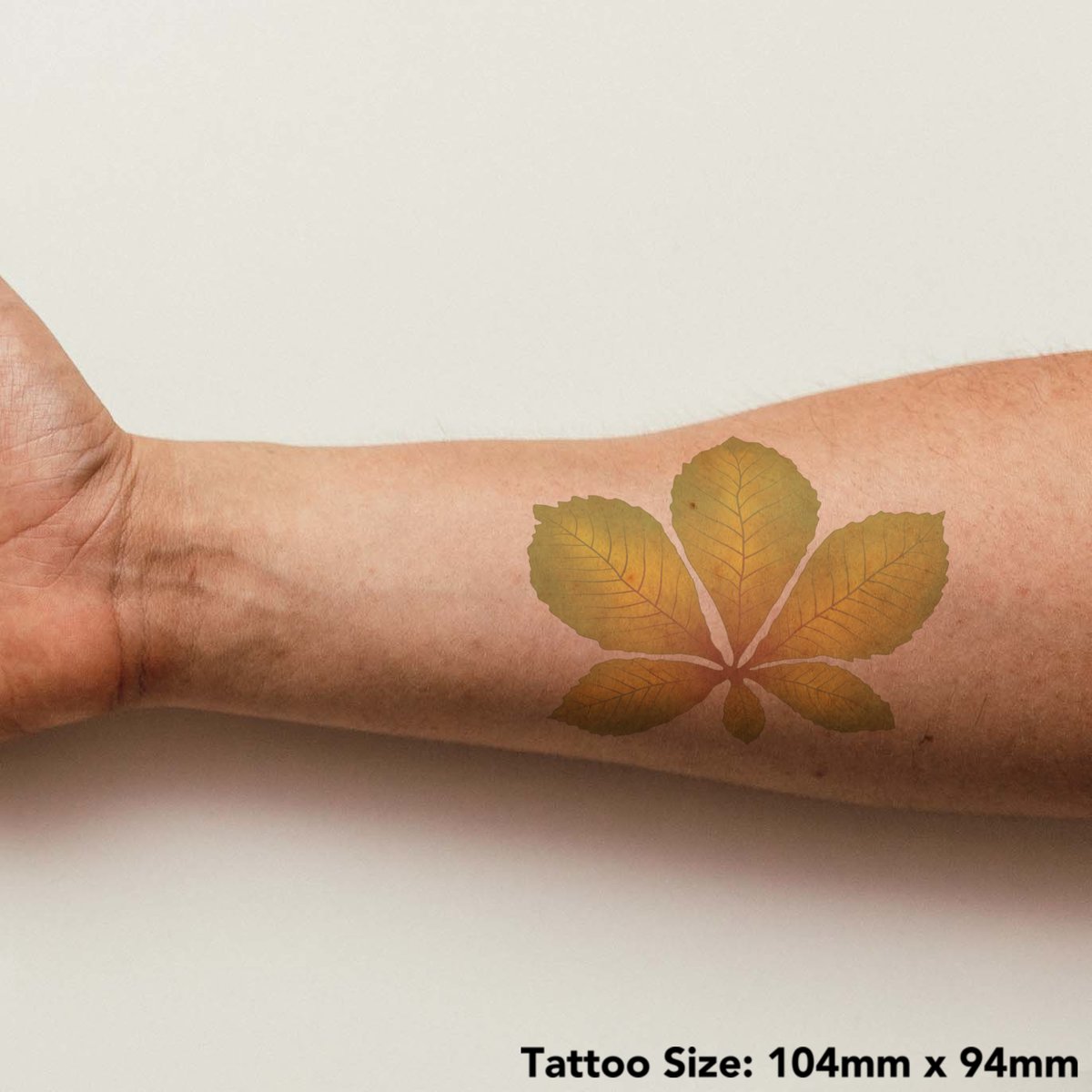 'Autumn Chestnut Leaf' Temporary Tattoo - Water Resistant, Skin-Safe, Non-Toxic Transfer (TO00064169)