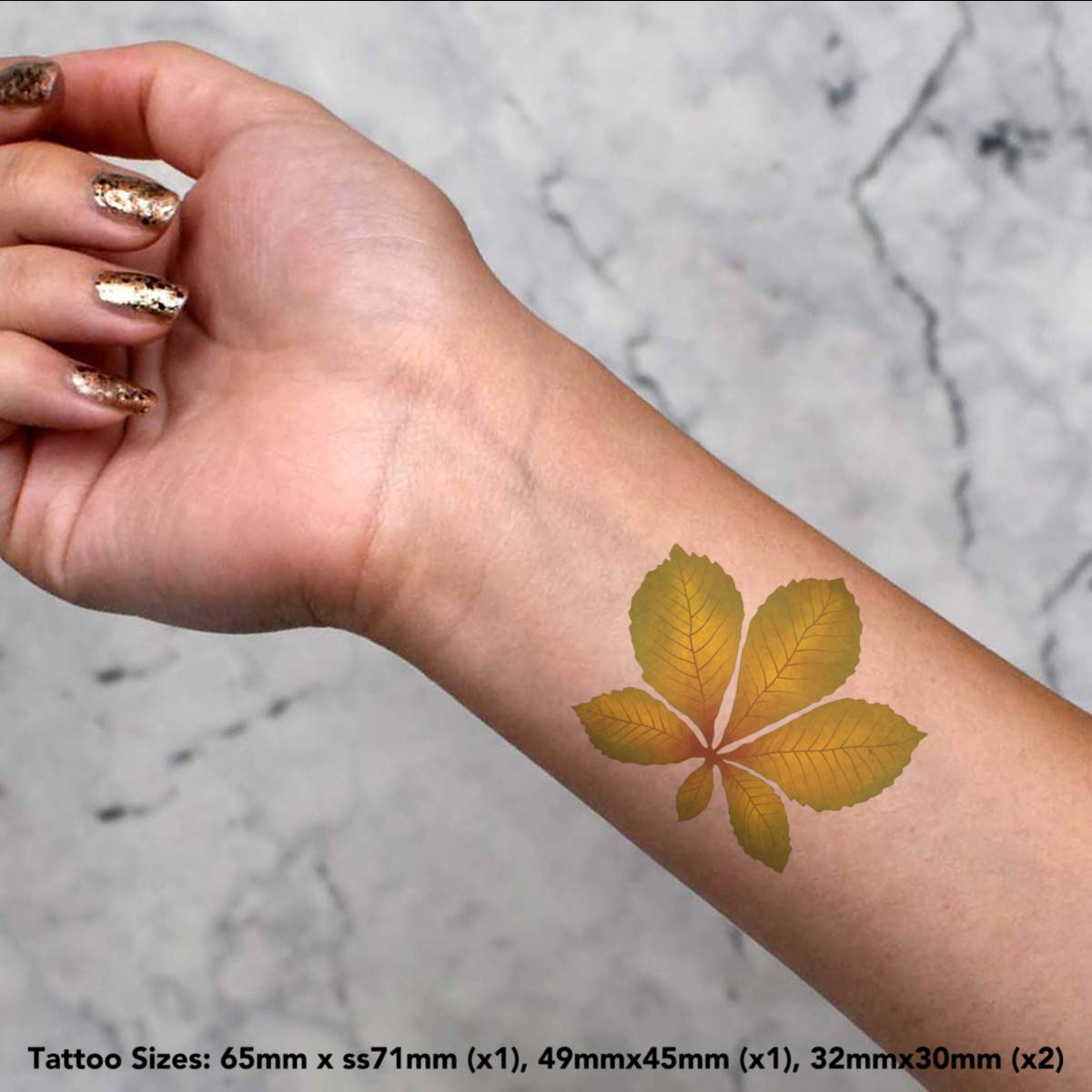 'Autumn Chestnut Leaf' Temporary Tattoos - Water Resistant, Skin-Safe, Non-Toxic Transfers (TO041630)
