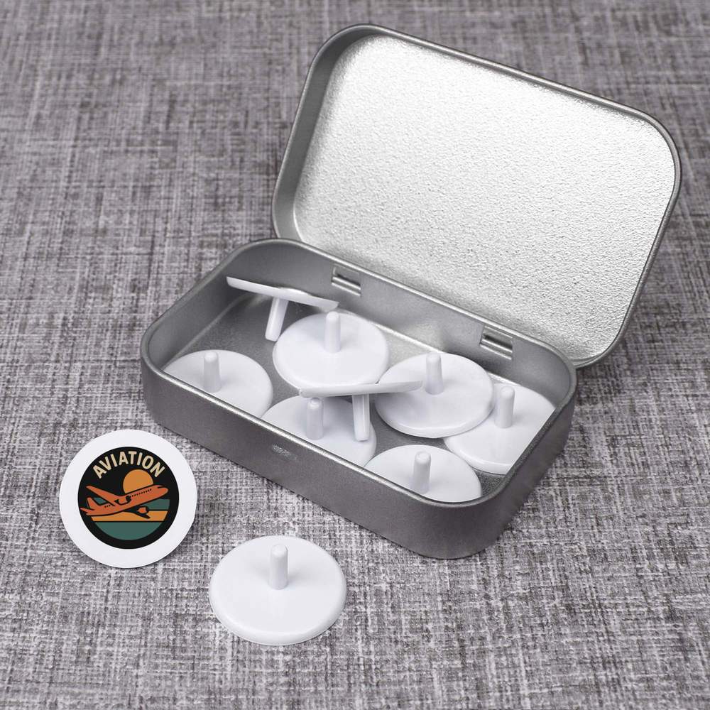 This set includes 1 tin containing 10 matching golf ball markers.