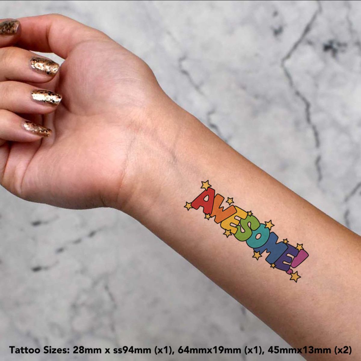 'Awesome Rainbow Text' Temporary Tattoos - Water Resistant, Skin-Safe, Non-Toxic Transfers (TO038745)