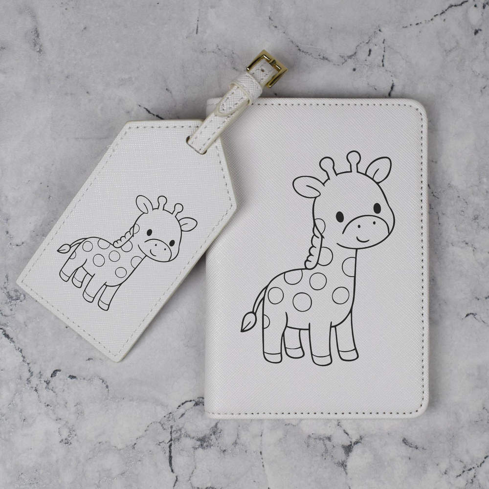 A luxury travel set for holiday makers and jet setters! This premium duo consists of a passport cover and matching luggage tag; both made from white, leather-look PU and printed with a unique design.