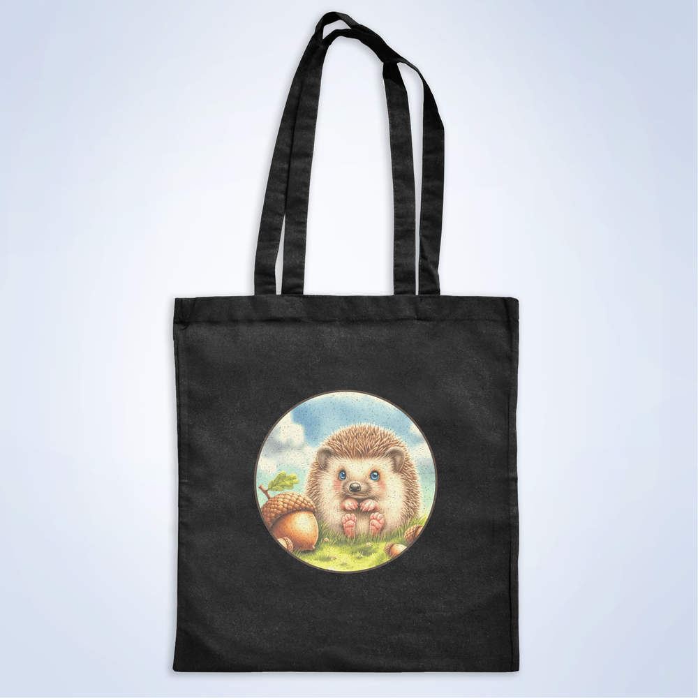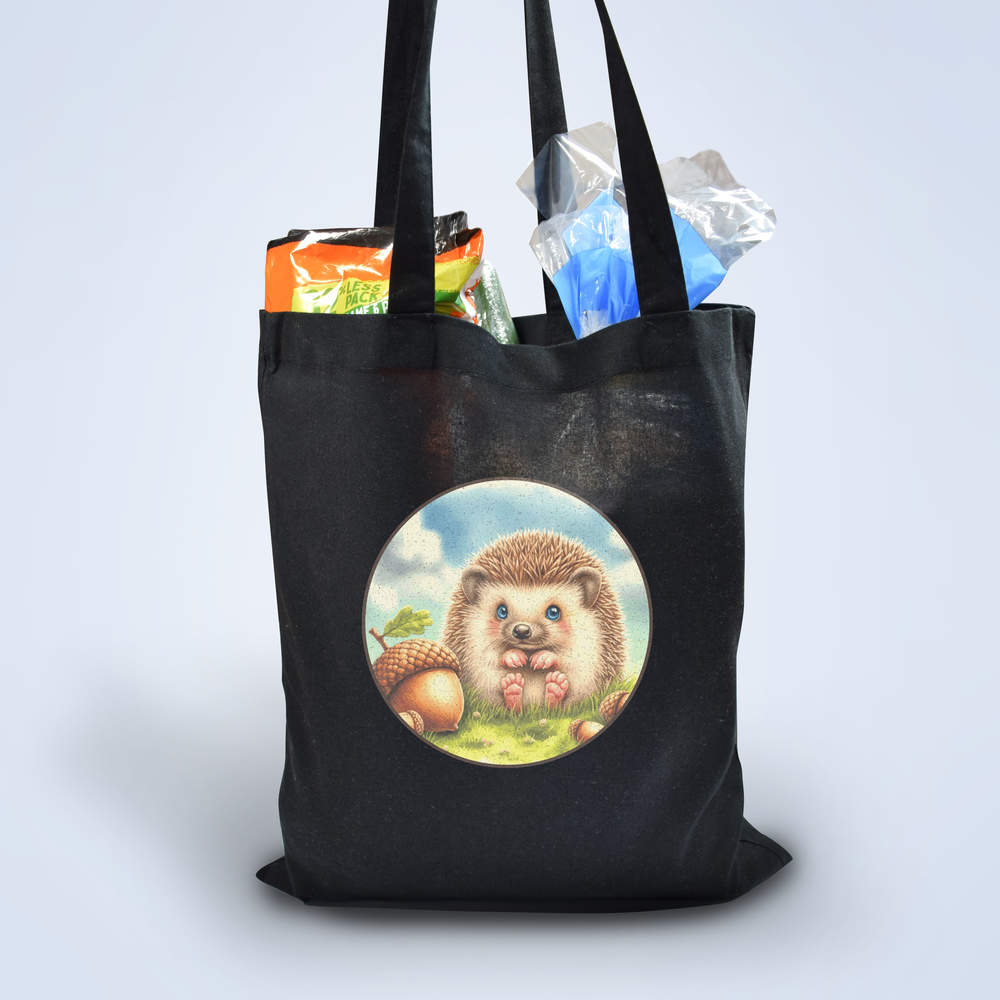 'Baby Hedgehog With Acorns' Classic Black Tote Shopper Bag (ZB00026574)