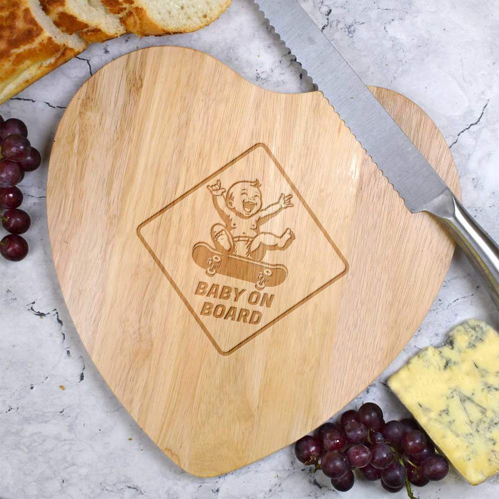 'Baby On Skateboard' Wooden Heart Shaped Chopping / Cutting Board (WB00095033)