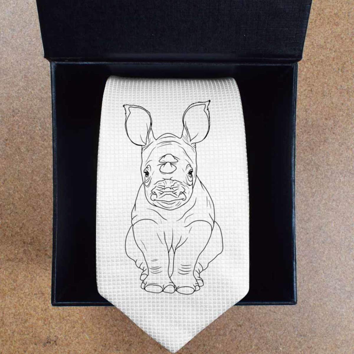 This stylish slim white tie is guaranteed to add class to any outfit. Printed on the front with a design from one of our talented designers, these ties are perfect for formal events, special occasions or making a statement at the office.