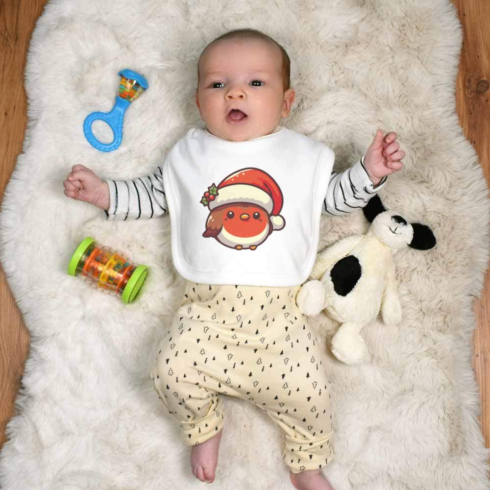 'Baby Robin Wearing Santa Hat' Soft Cotton Baby Bib (BI00068393)