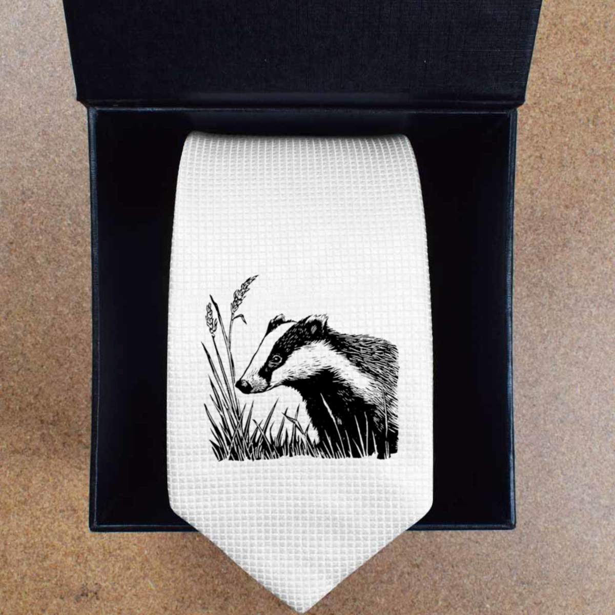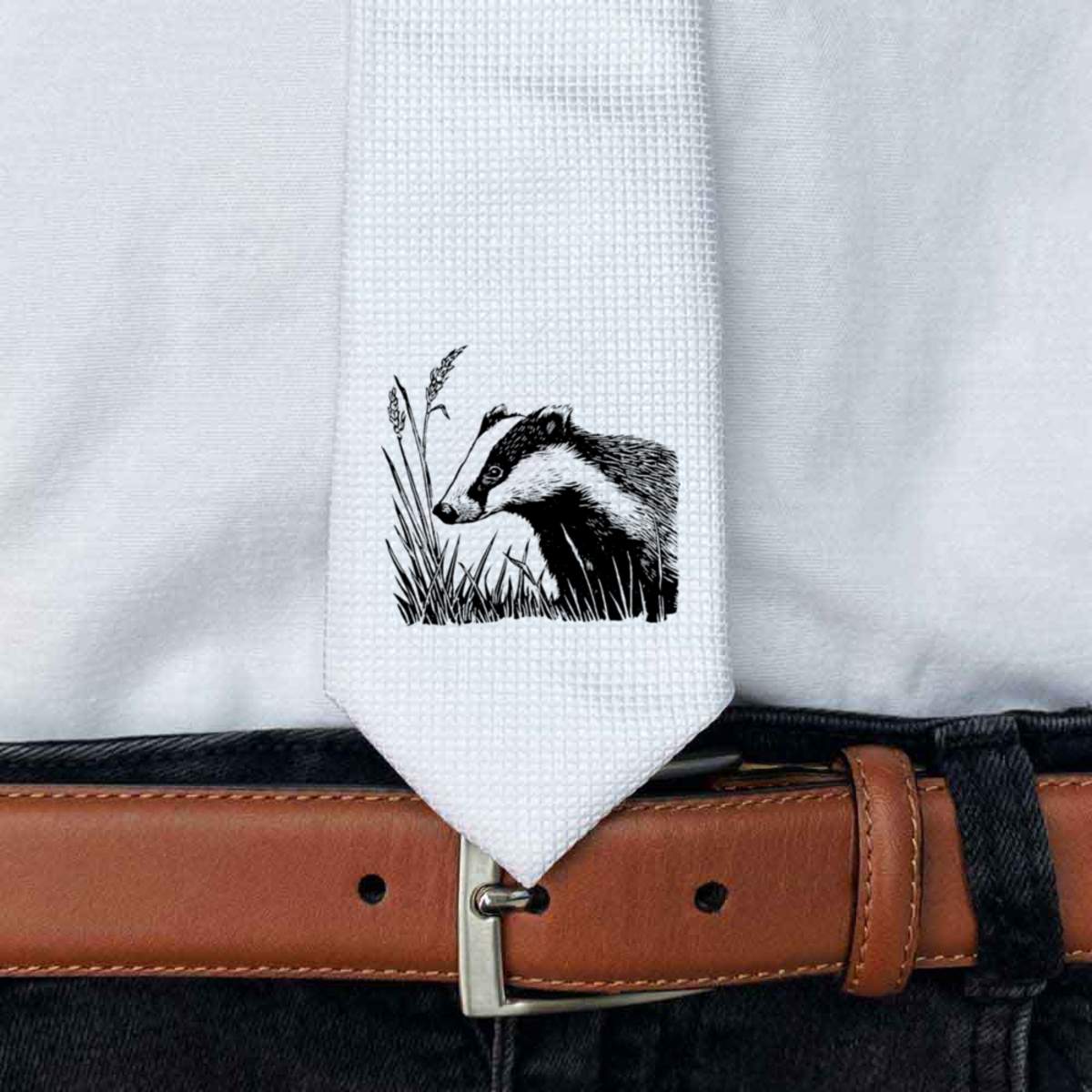 This stylish slim white tie is guaranteed to add class to any outfit. Printed on the front with a design from one of our talented designers, these ties are perfect for formal events, special occasions or making a statement at the office.