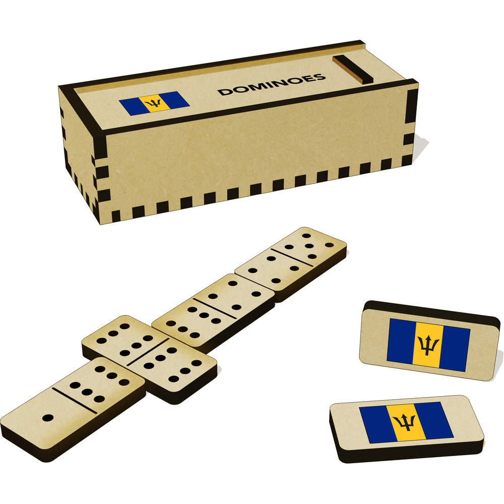 A full set of 28 MDF dominoes + an additional 6 blanks, complete with a slide top box to store them in.