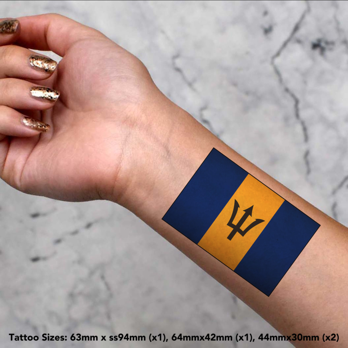 'Barbados Flag' Temporary Tattoos - Water Resistant, Skin-Safe, Non-Toxic Transfers (TO023042)