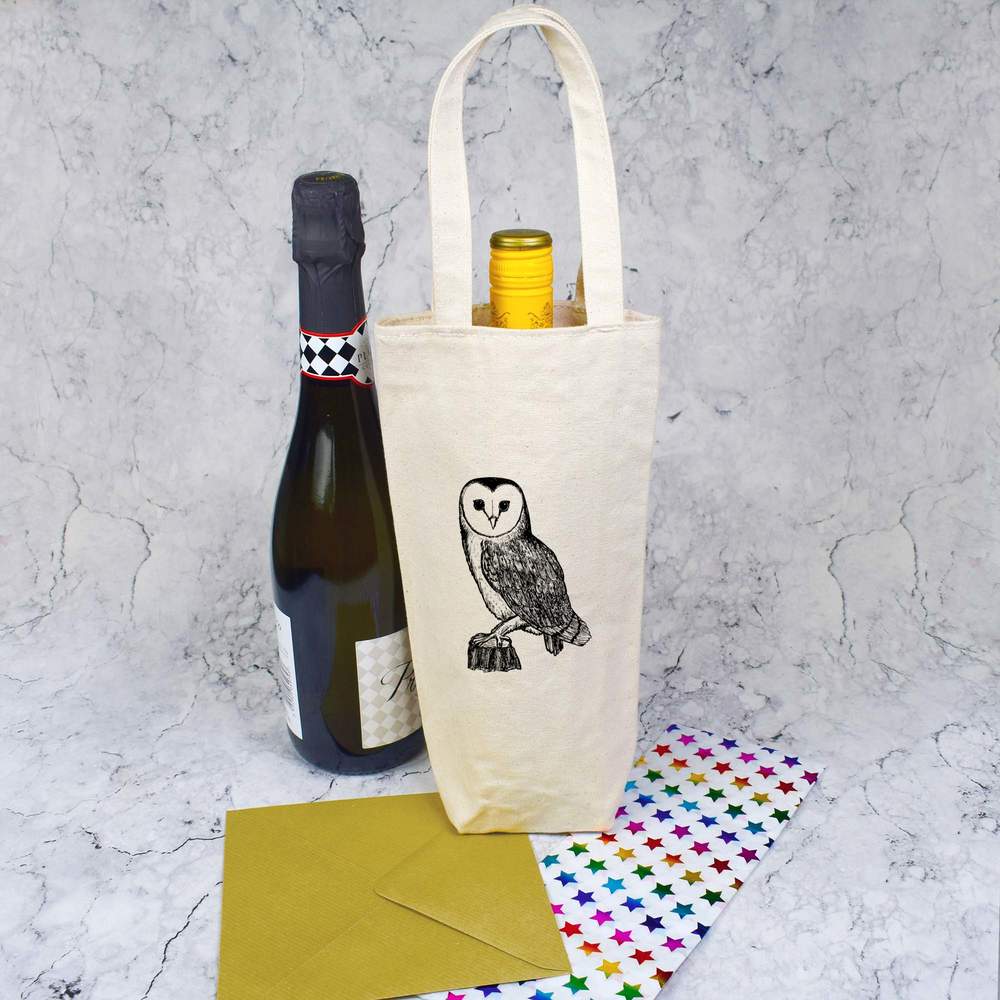 'Barn Owl' Cotton Wine Bottle Gift / Travel Bag (BL00024242)