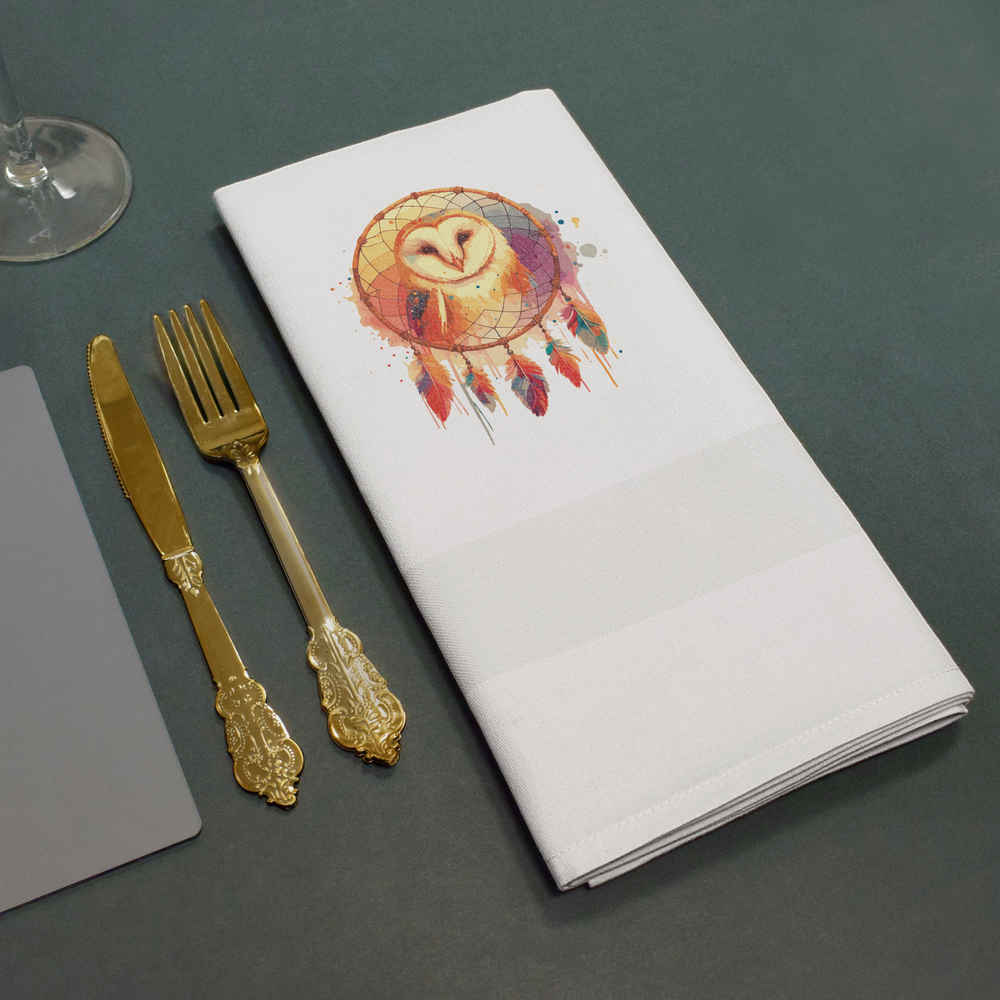 'Watercolour Illustration of a Dreamcatcher with Barn Owl'