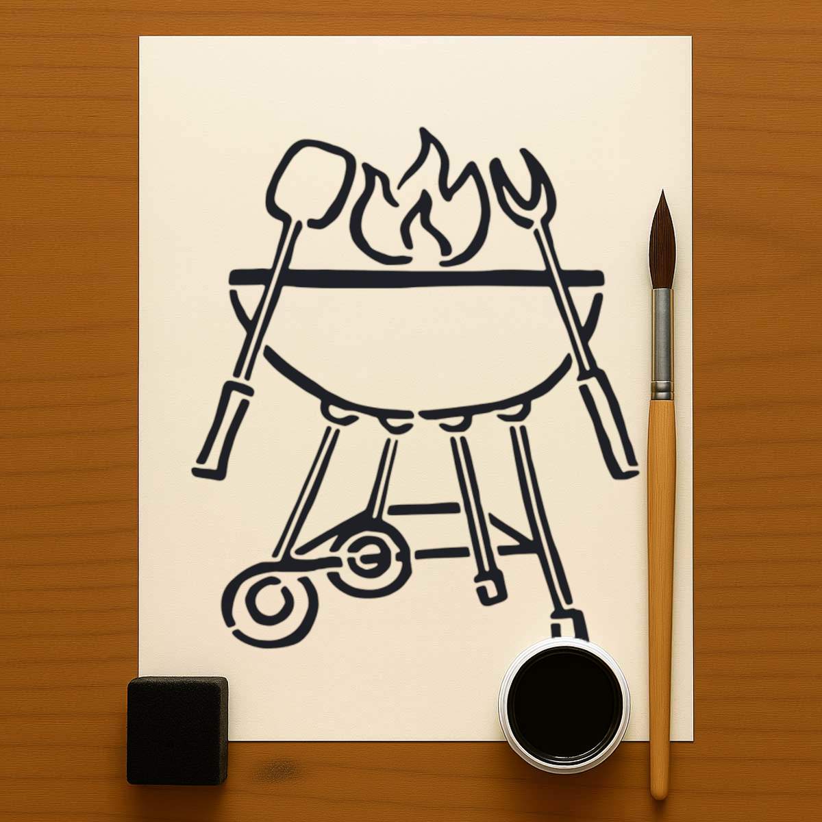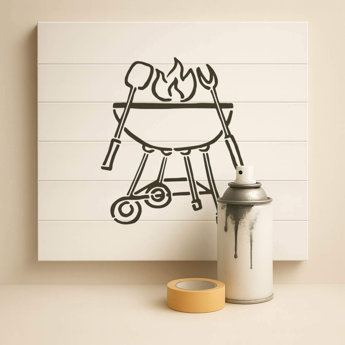 'BBQ Grill' Reusable Stencil – Durable Decorative Template for Painting and Spraying on Walls, Tiles, Wood, Fabric & Craft Projects - M (A5) (WS00041990)