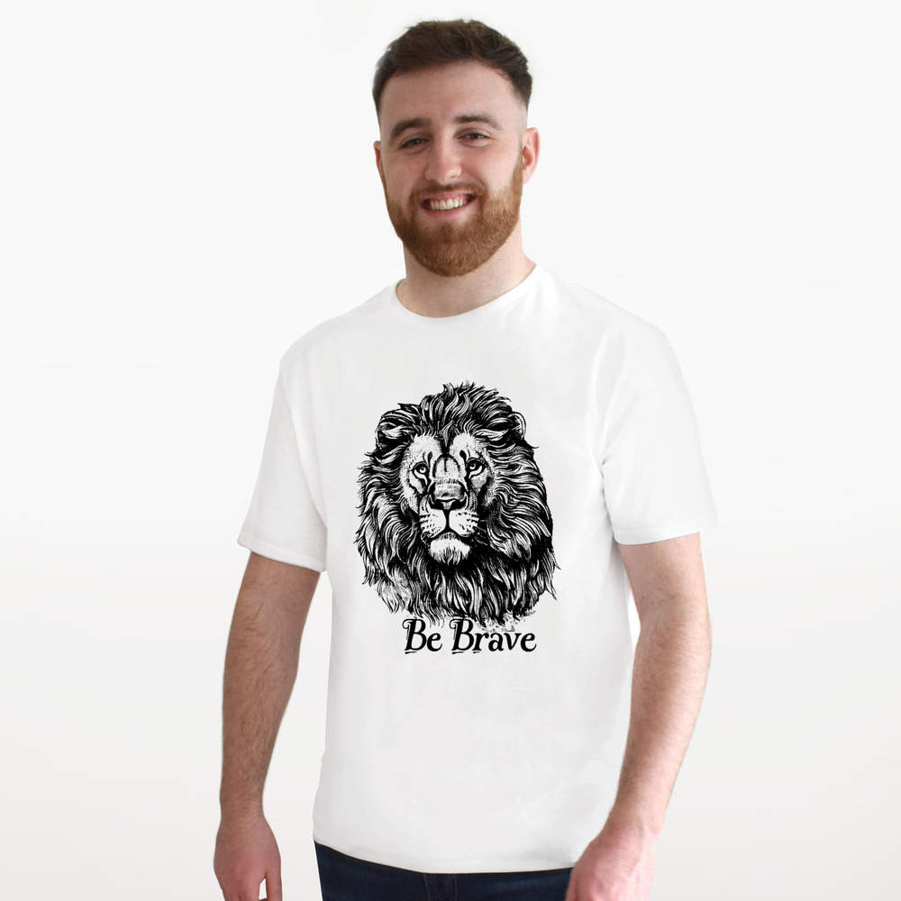 'Be Brave with Lion' Unisex T-Shirt - 100 % Cotton, White, XXL (TA00290652)