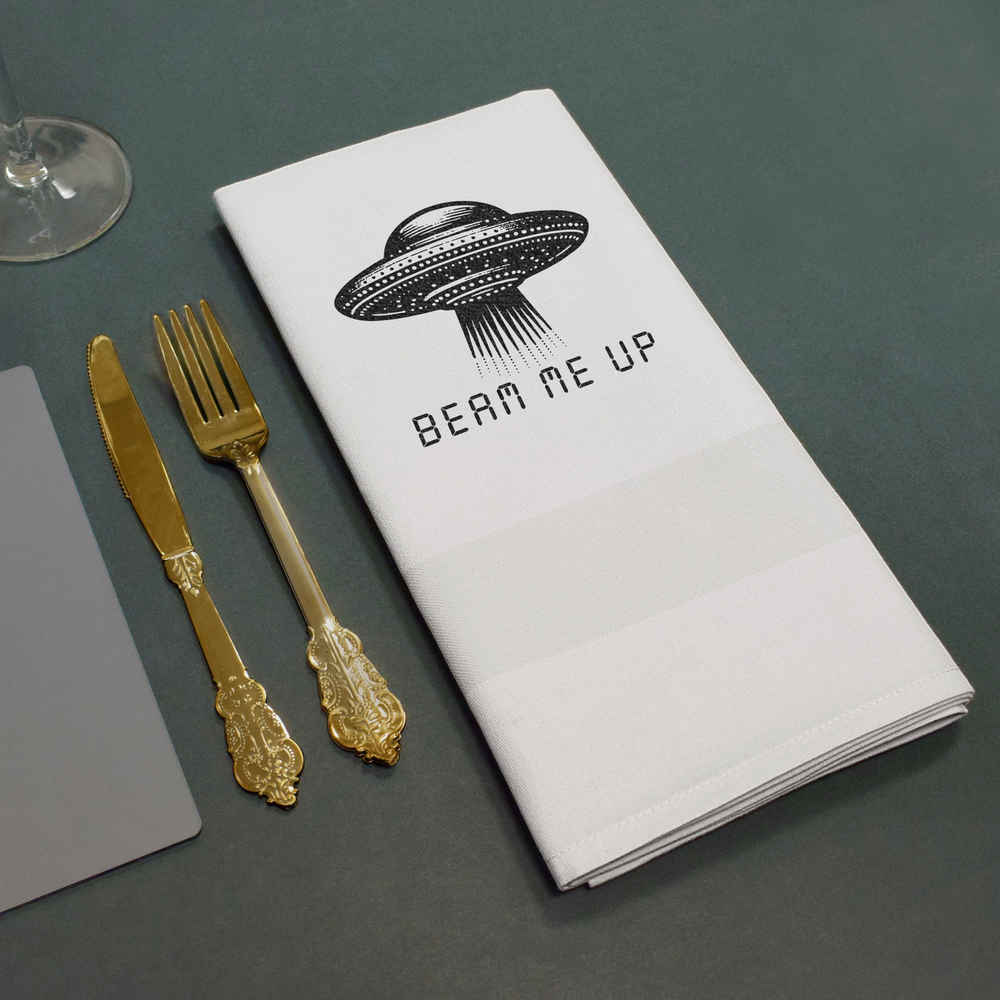'UFO Spaceship Design with text 'Beam Me Up''
