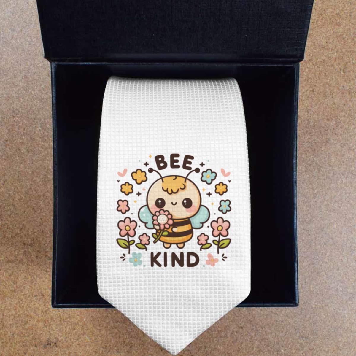- Slim white tie with black presentation box