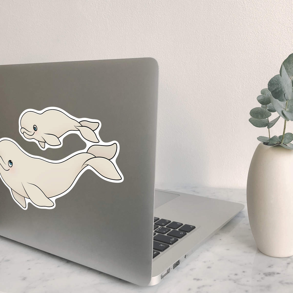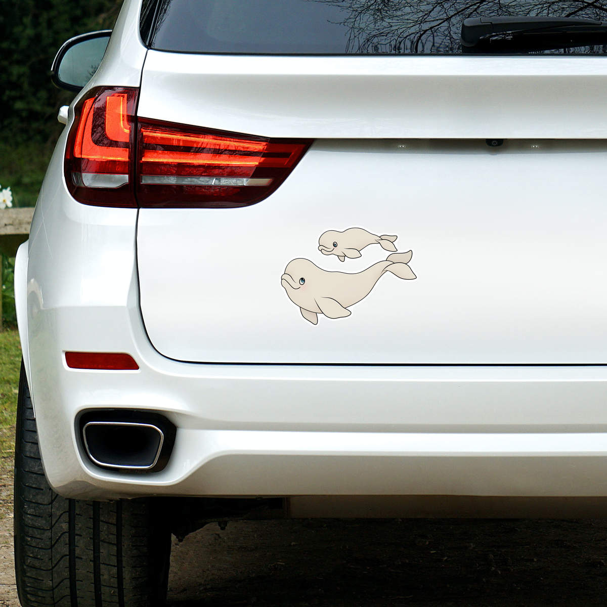 'Beluga Whale Family' White Premium Vinyl Decal Sticker – Waterproof, Durable & Easy to Apply - For Car Bumpers, Windows, Bins & More - Large (210mm) (DW00049211)