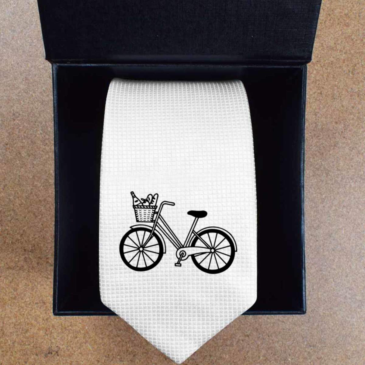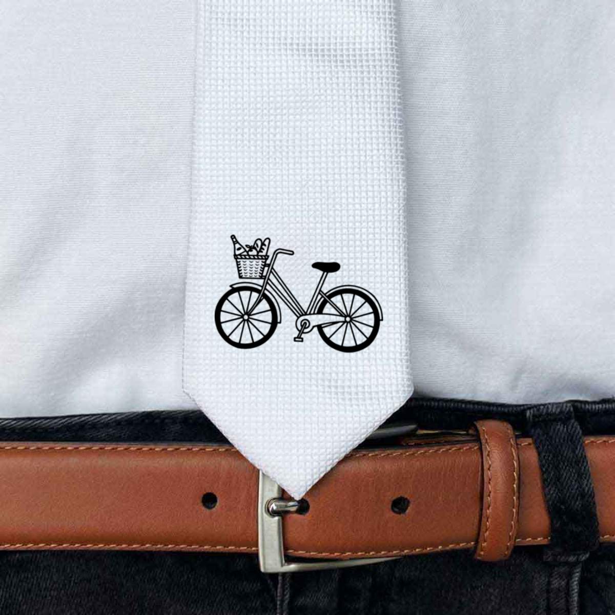 'Bike With Groceries' White Tie / Necktie with Gift Box (AT00007207)