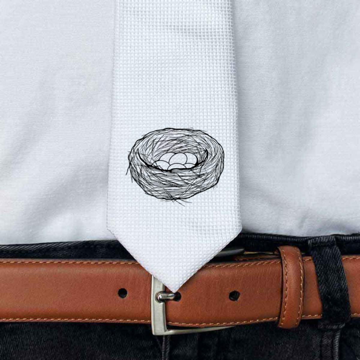 'Birds Nest & Eggs' White Tie / Necktie with Gift Box (AT00008367)