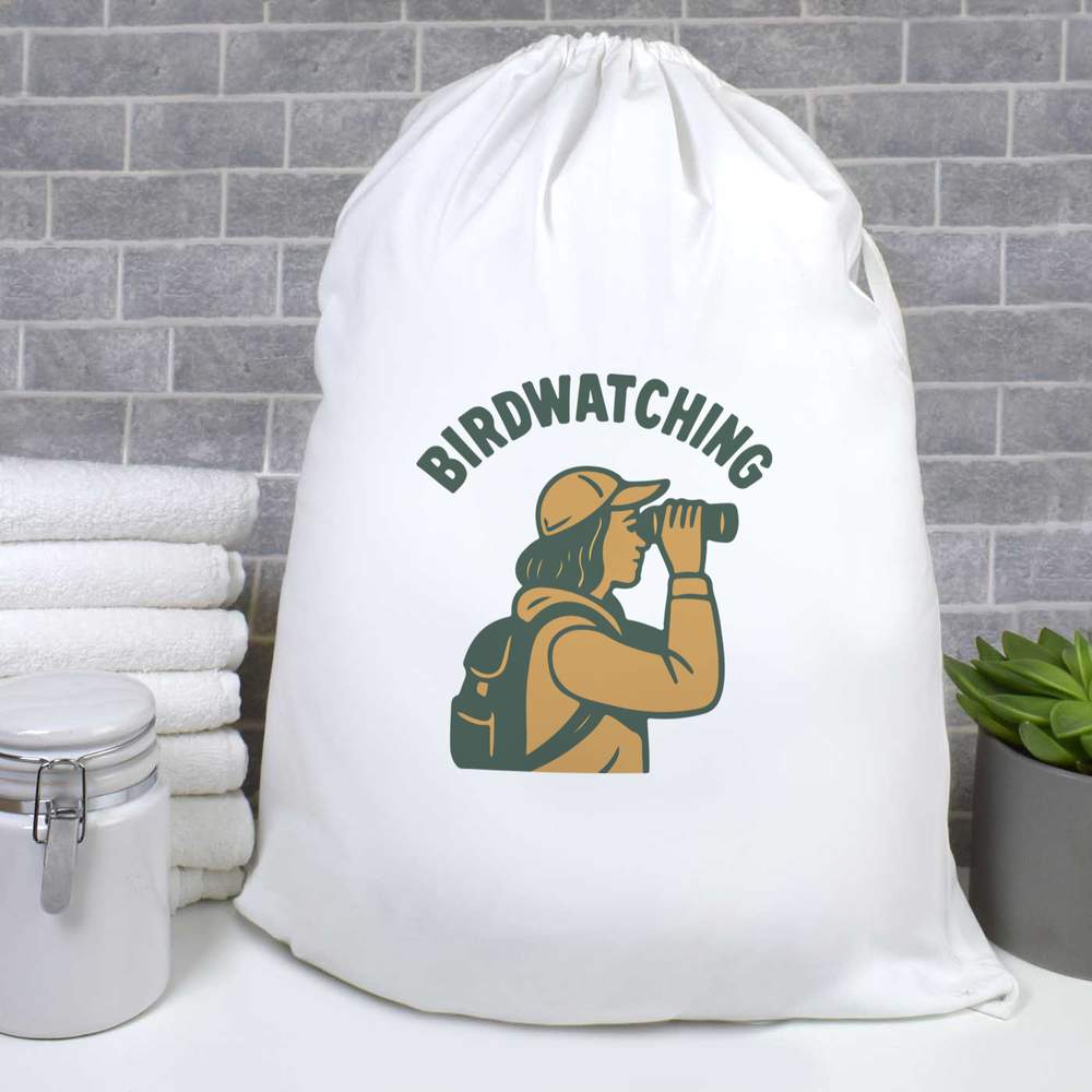 'A design depicting a person actively birdwatching with binoculars, perfect for nature lovers and outdoor enthusiasts.'