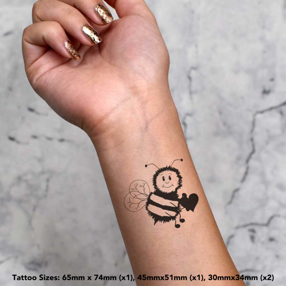 'Black and White Cartoon Bee' Temporary Tattoos - Water Resistant, Skin-Safe, Non-Toxic Transfers (TO038433)
