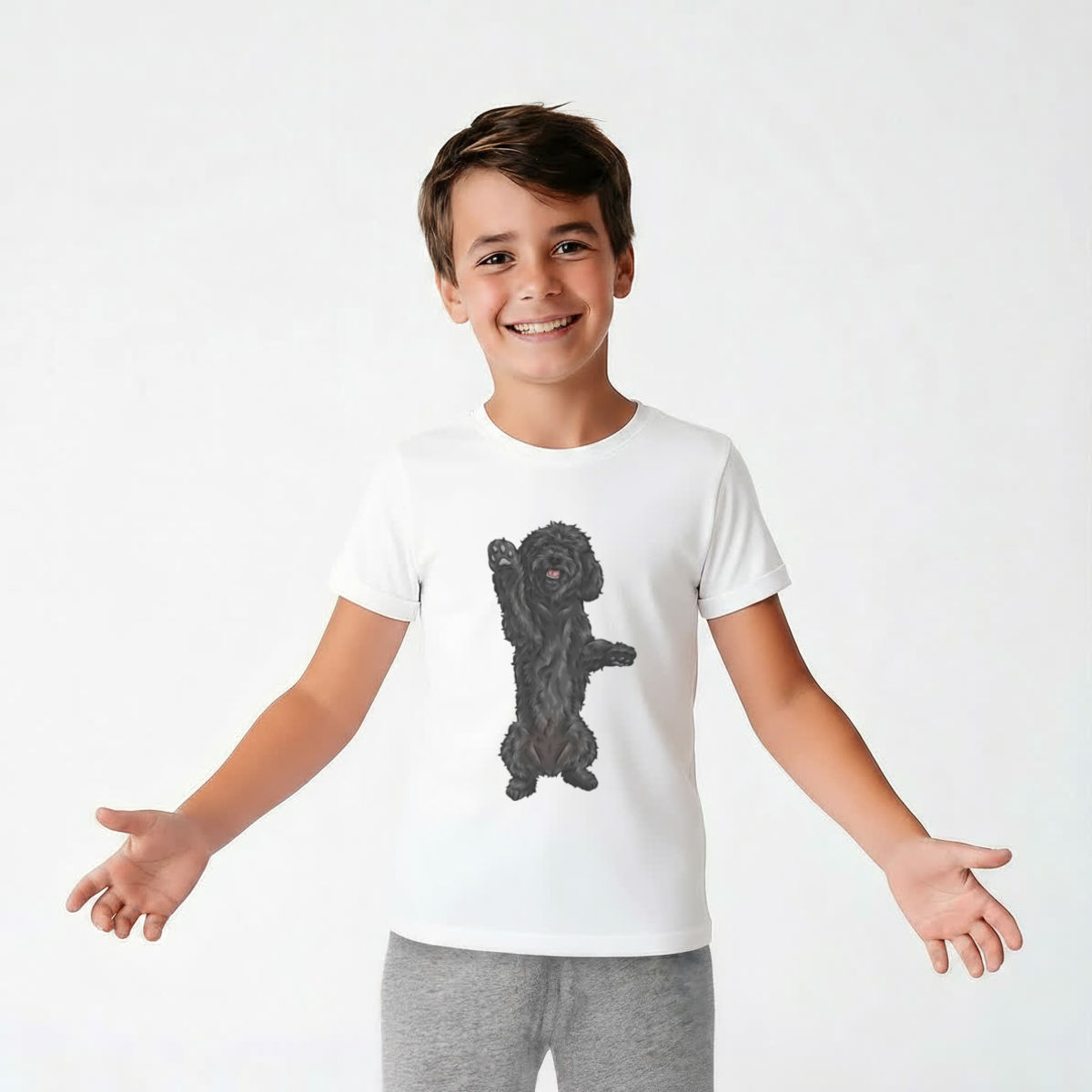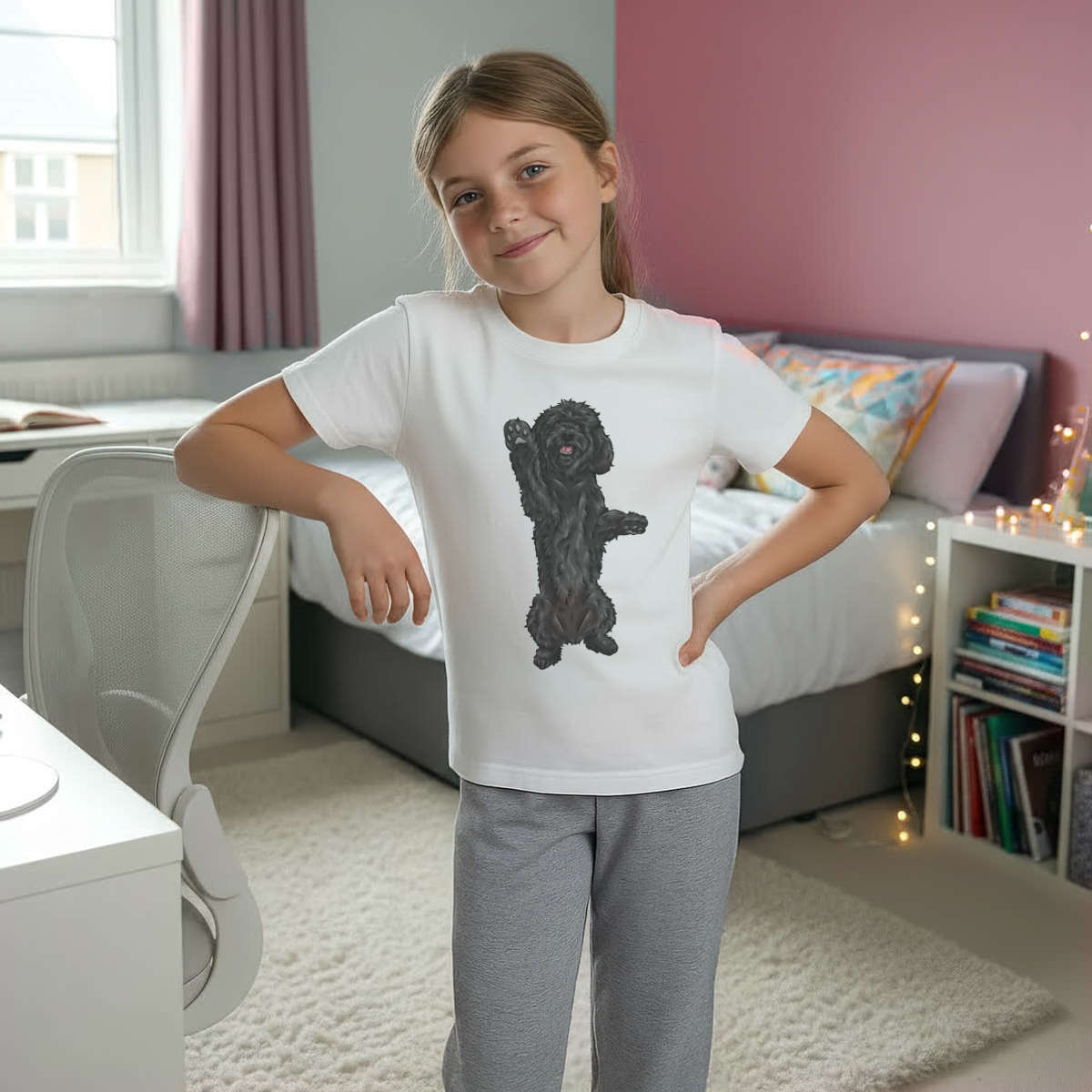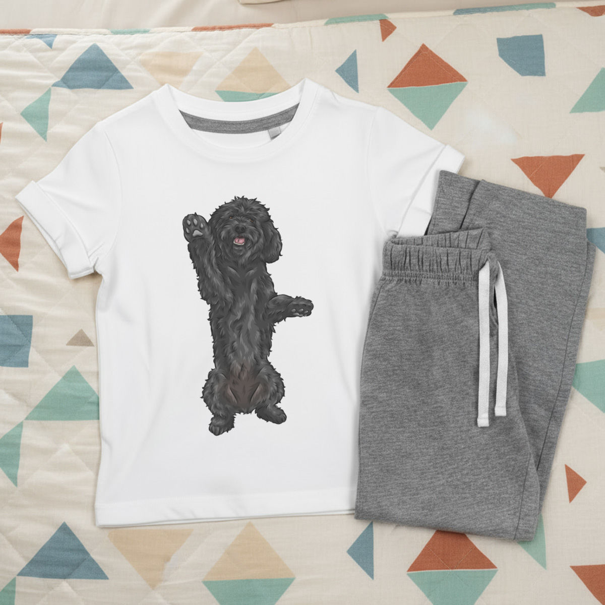 'Black Cockapoo' Kids Cotton Pyjama Set – Comfortable Children's Nightwear, Sleepwear and Loungewear - Black Doodle Dog Begging Pose - Unisex for Boys and Girls - Grey, 11-13 Years