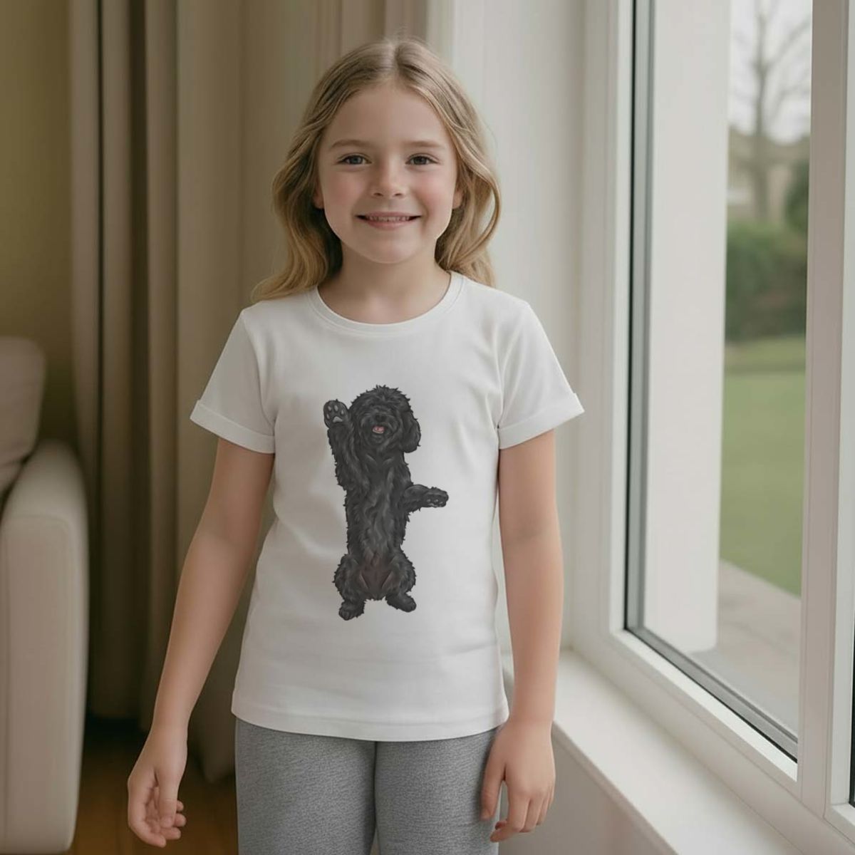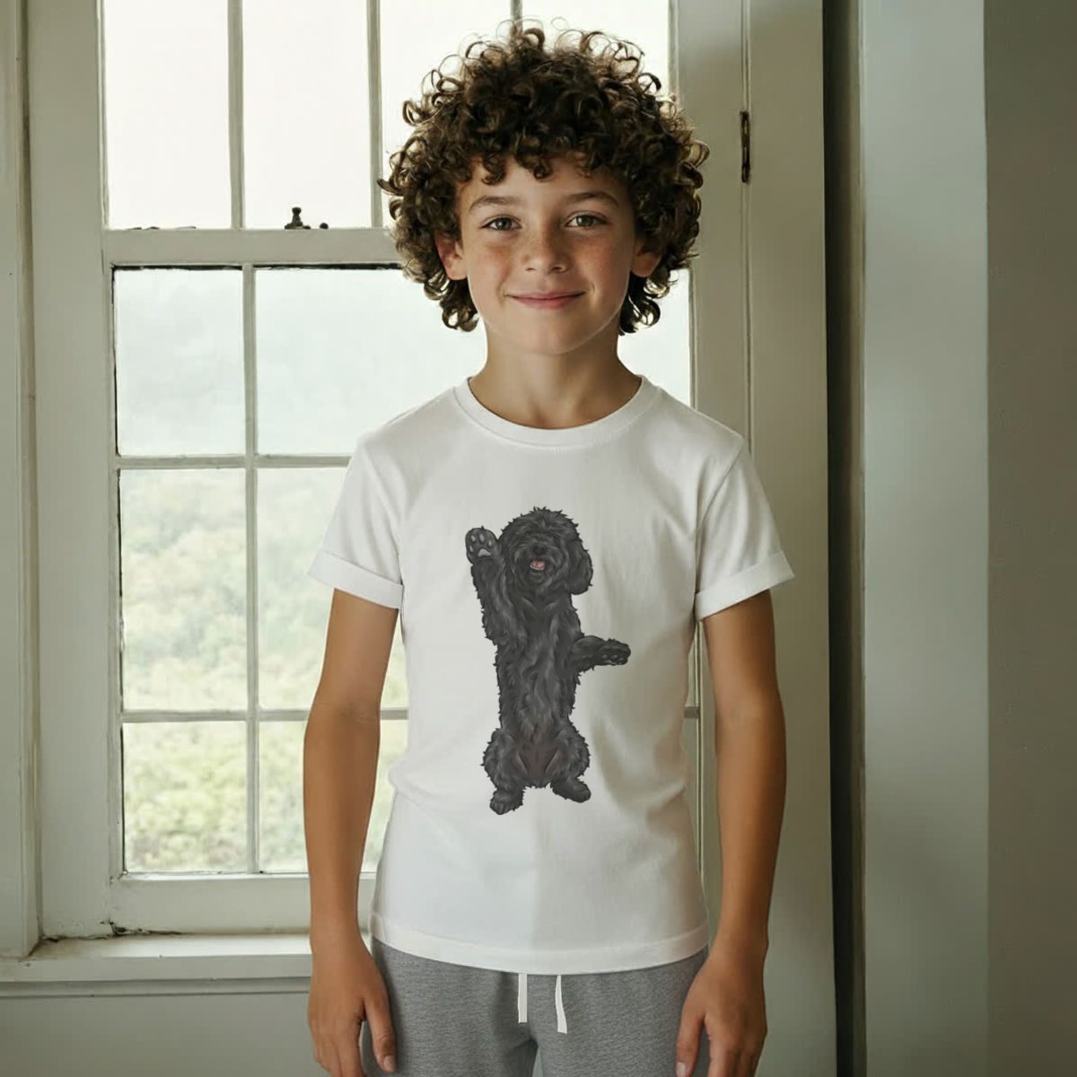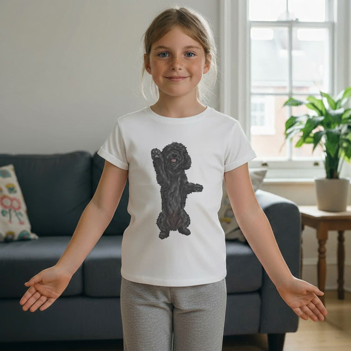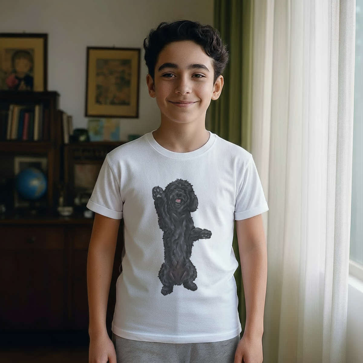 'Black Cockapoo' Kids Cotton Pyjama Set – Comfortable Children's Nightwear, Sleepwear and Loungewear - Black Doodle Dog Begging Pose - Unisex for Boys and Girls - Grey, 11-13 Years