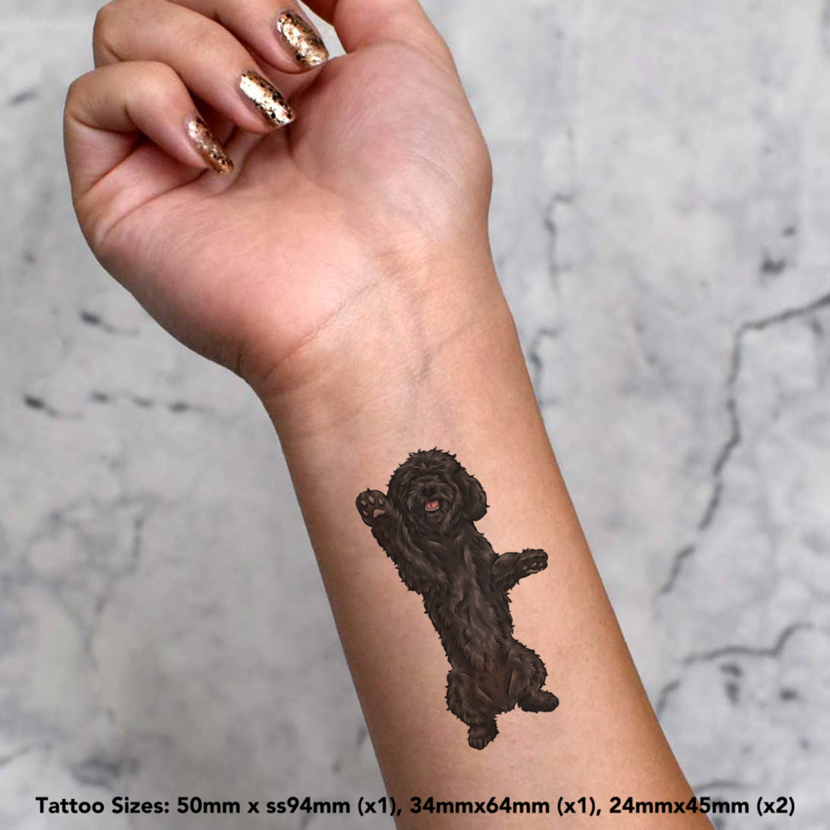 'Black Cockapoo' Temporary Tattoos - Black Doodle Dog Begging Pose - Water Resistant, Skin-Safe, Non-Toxic Transfers (TO031880)