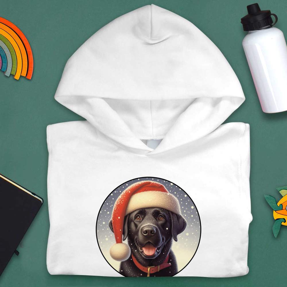 'Illustration of a Black Labrador Wearing a Santa Hat'