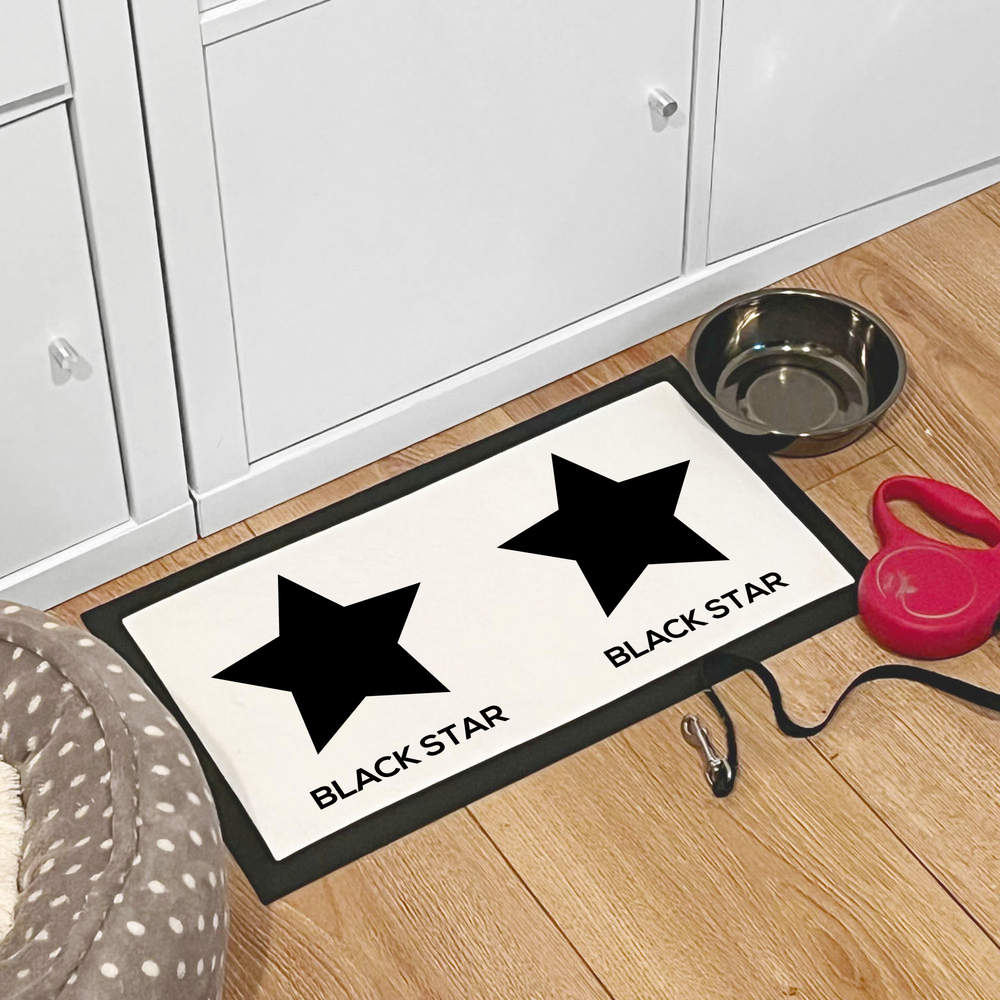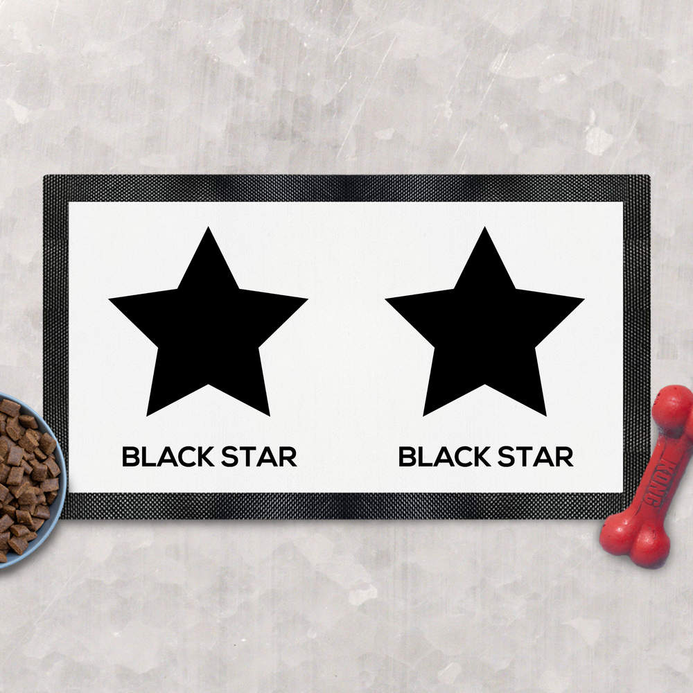 'Black Star Text with Star icon' Pet Feeding Mat (PM00016770)