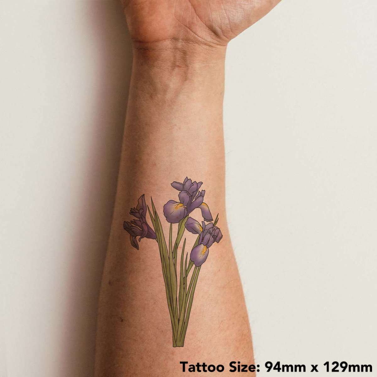 'Blue Iris Flowers' Temporary Tattoo - Water Resistant, Skin-Safe, Non-Toxic Transfer (TO00050104)