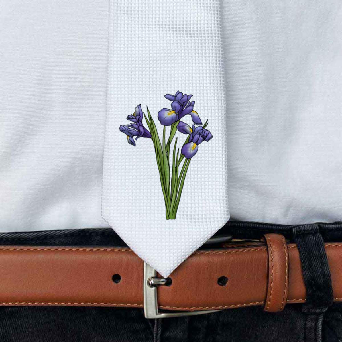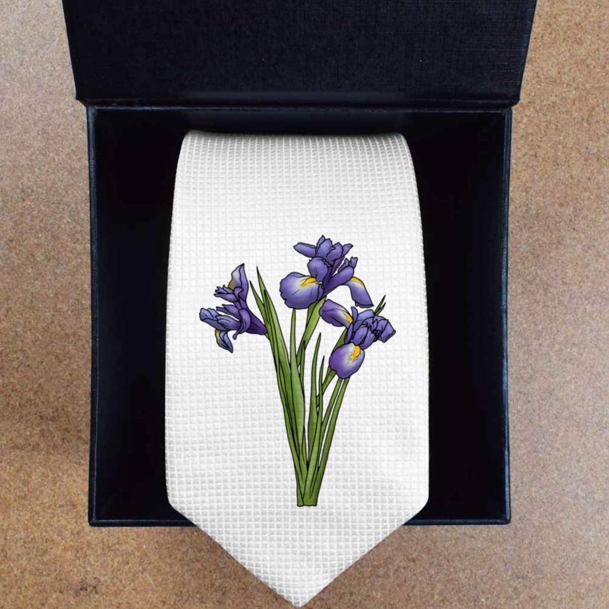 'Blue Iris Flowers' White Tie / Necktie with Gift Box (AT00011042)