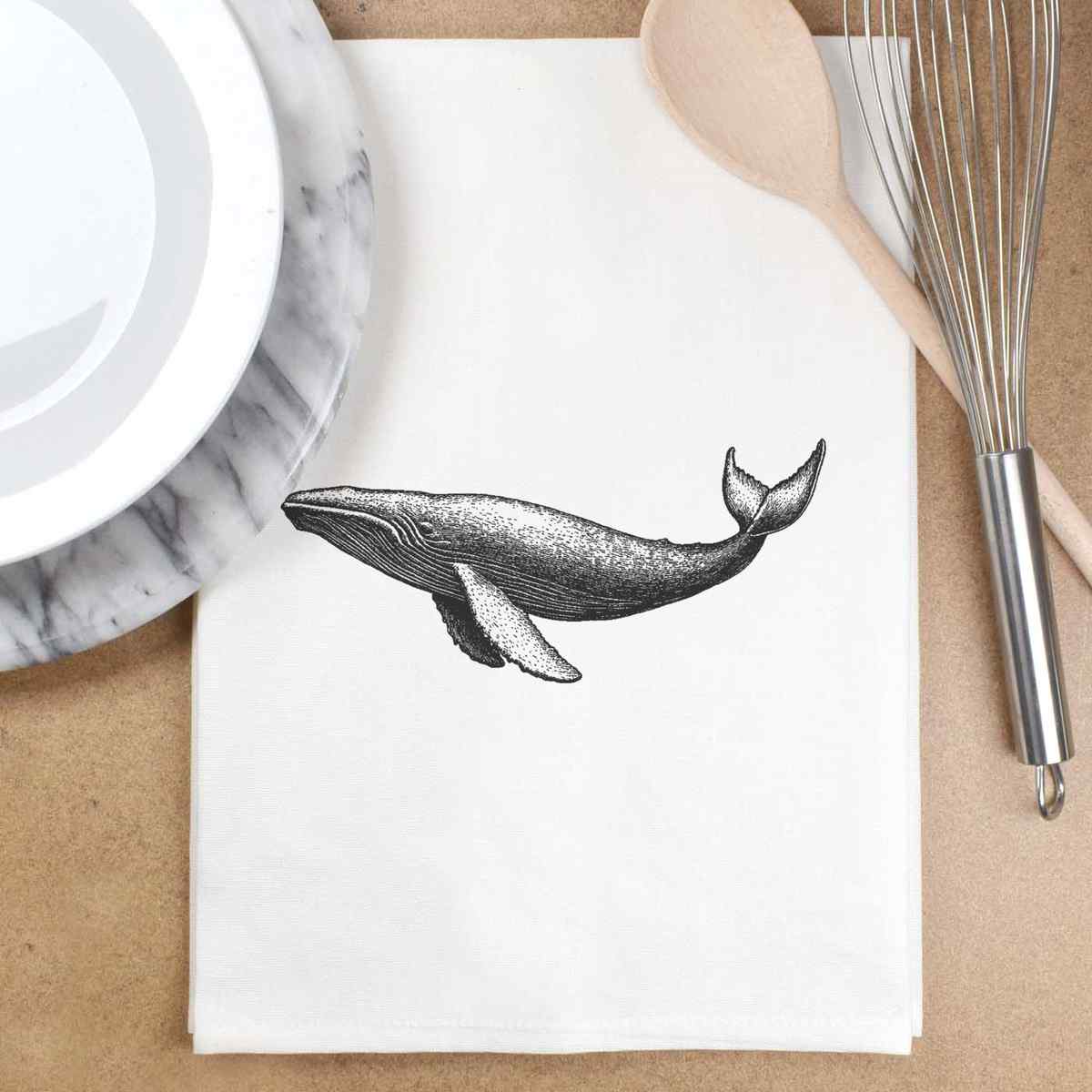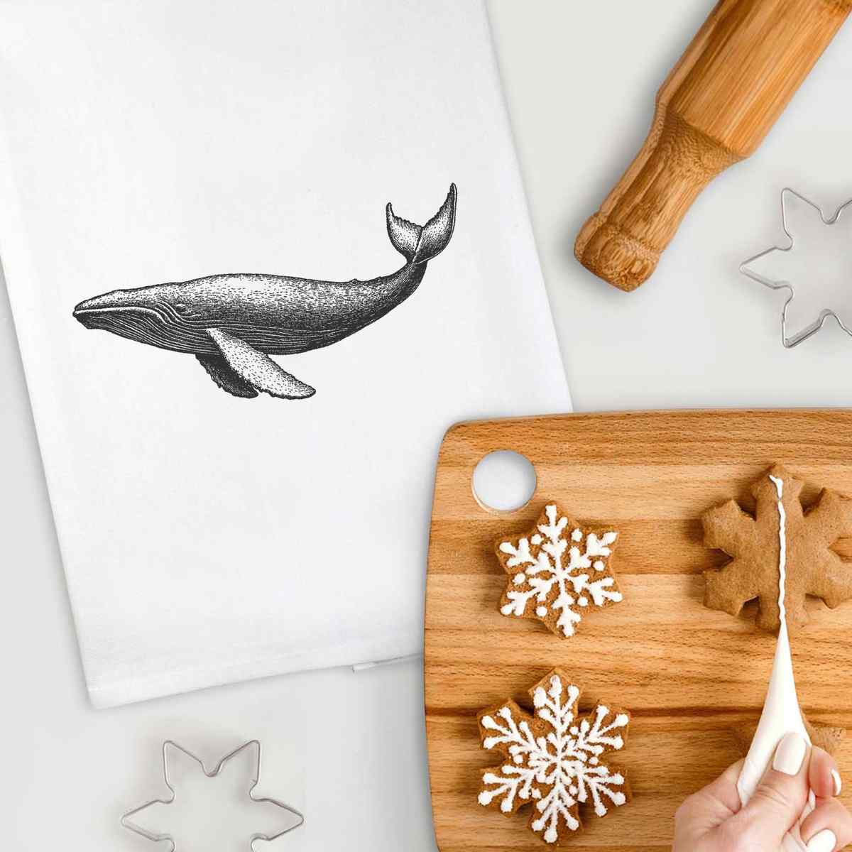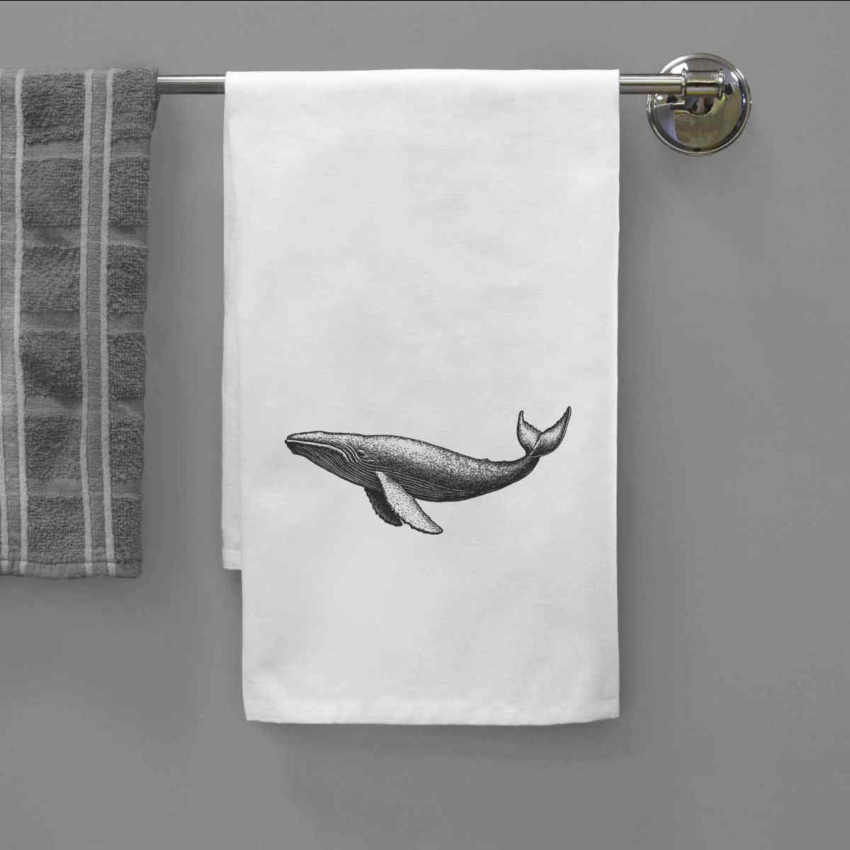 'Blue Whale Side View' Cotton Tea Towel / Dish Cloth (TW052017)